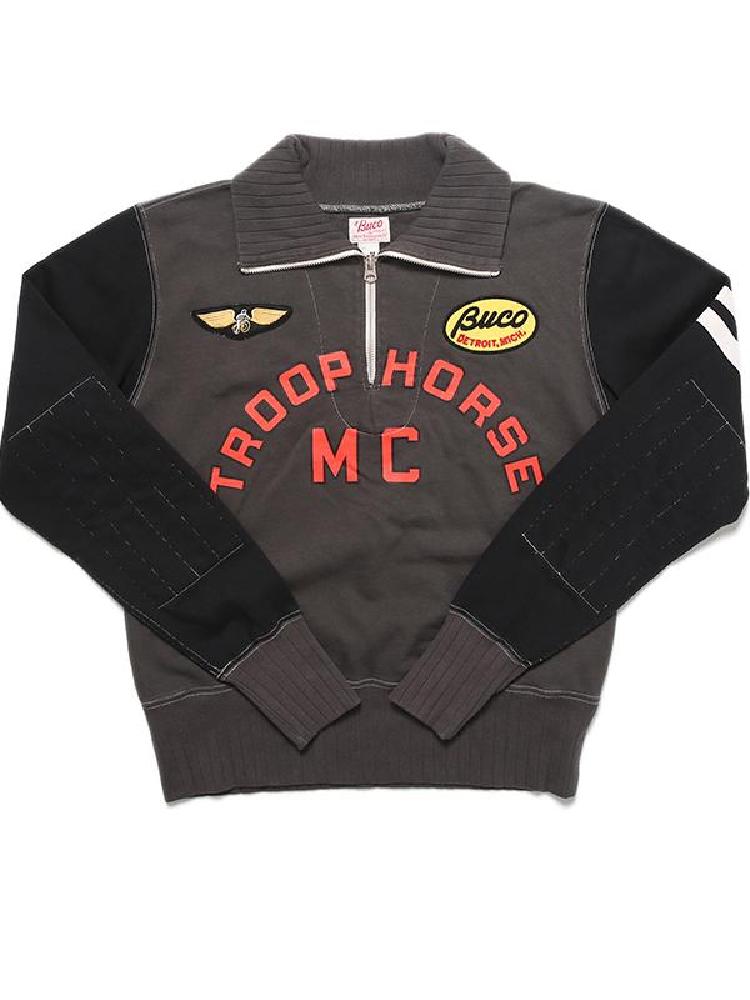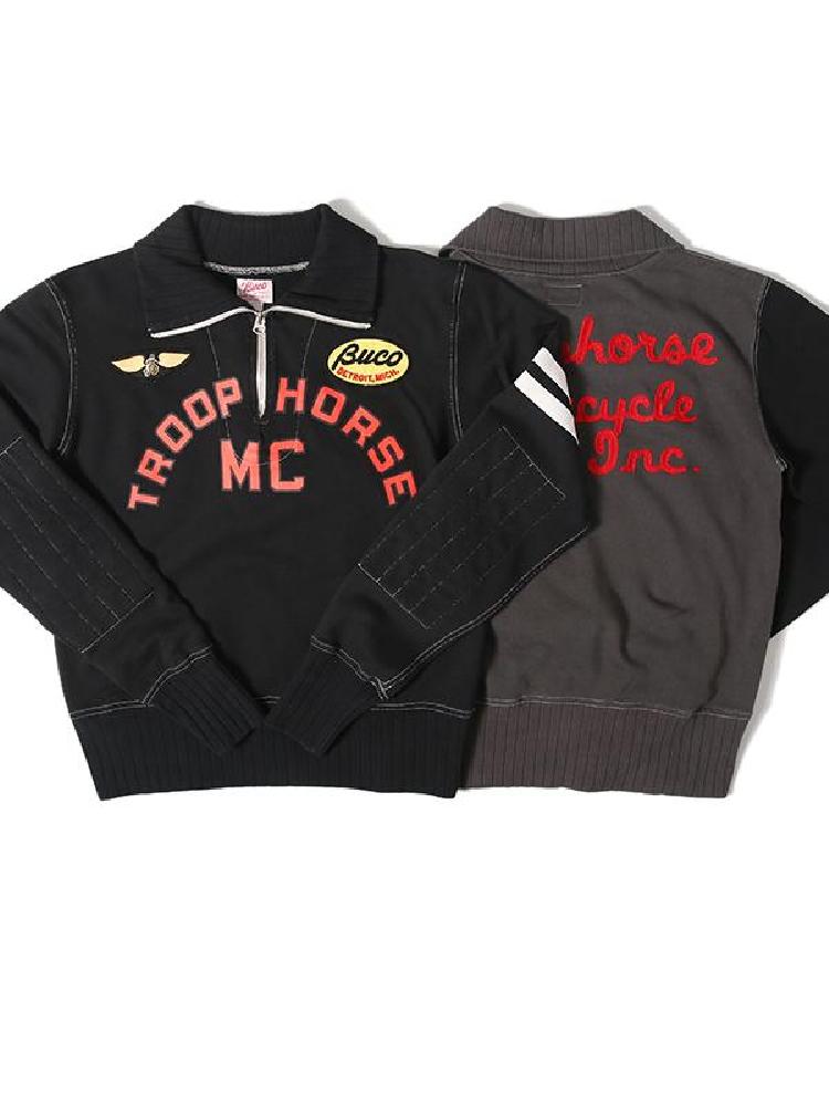 “ 骑士系列复古机车卫衣,延续了美式原始和复古的精髓。拼接款50-60年代机车卫衣,老式圆领“双V”设计,Vintage韵味十足,加上对比的白色拼接贴现出