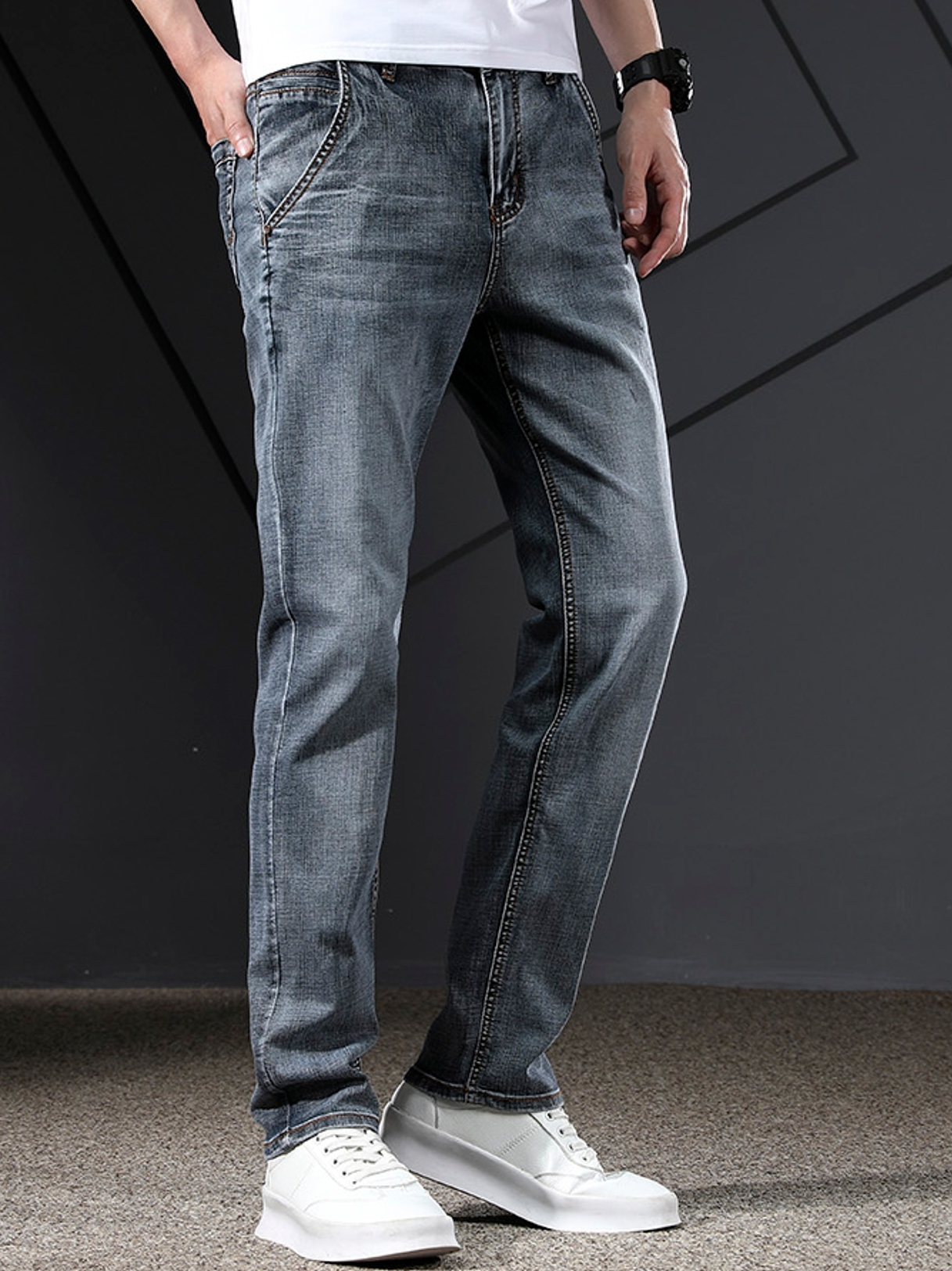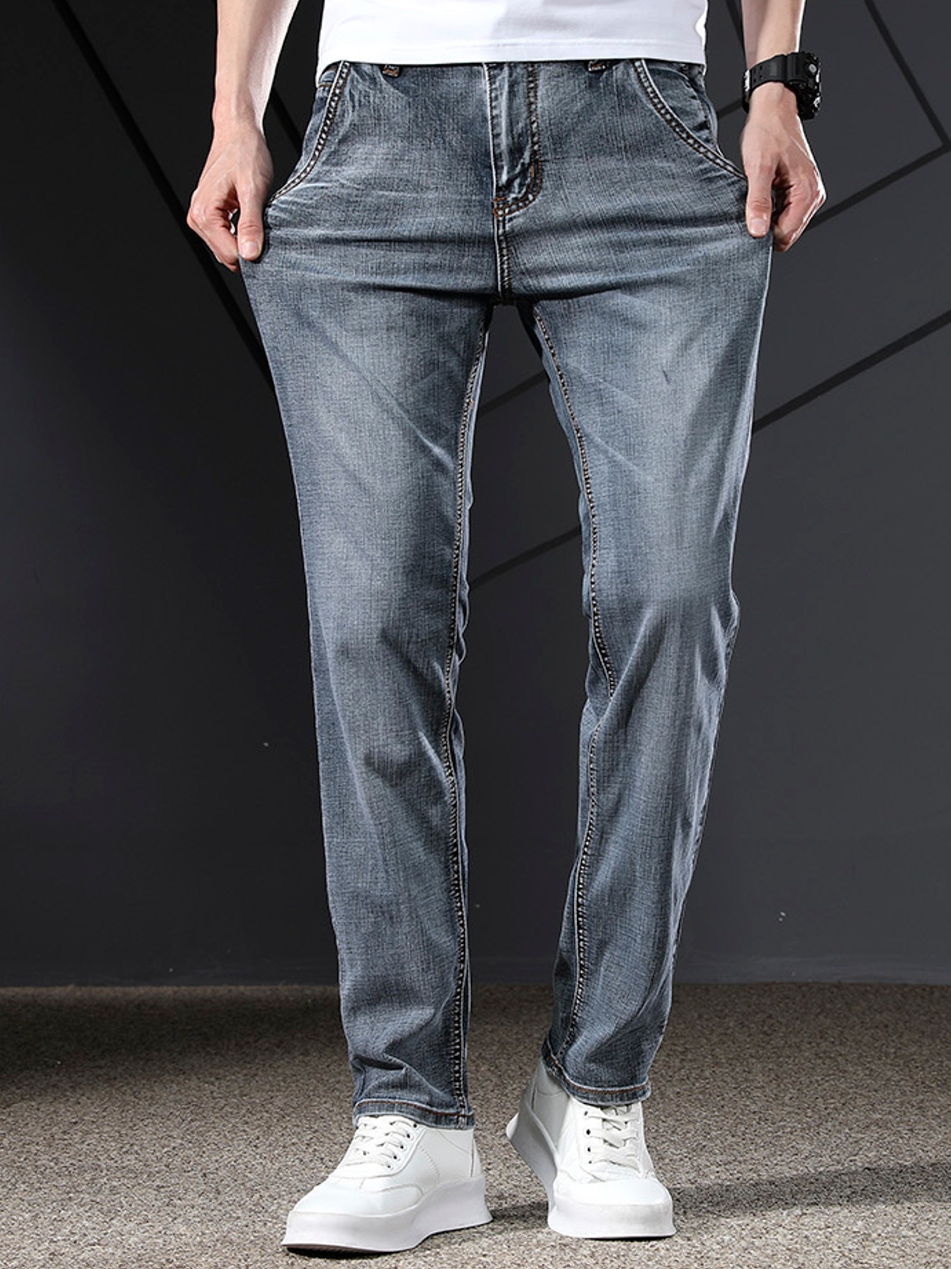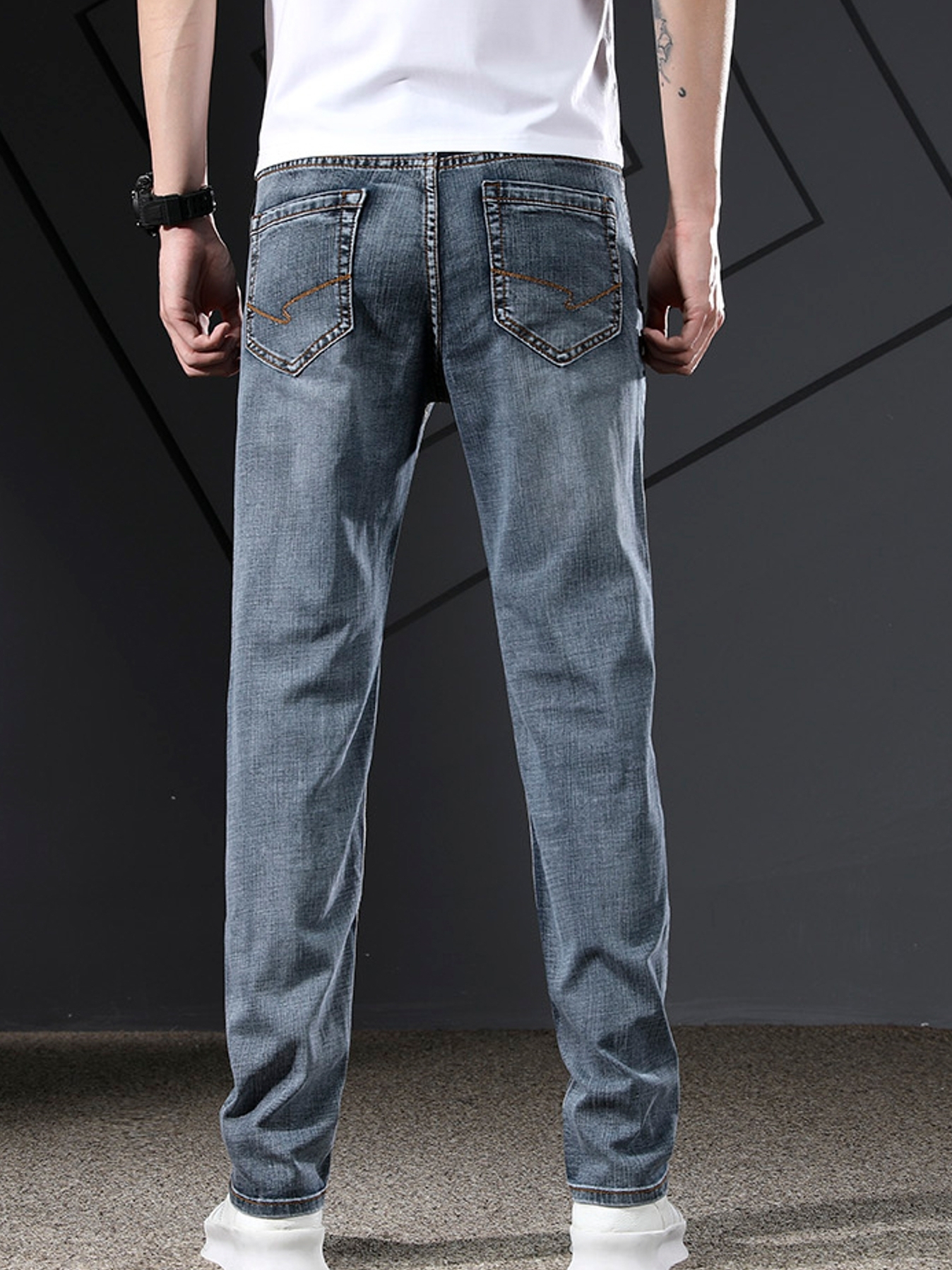 这款牛仔裤,高品质的材质,质感极佳,穿在身上不刺激。百搭的款式,适合各种身型,反正是很百搭的设计。
