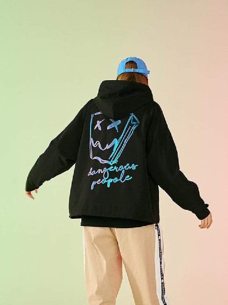 谁说深色调的穿搭就一定没有特色,只要加入一些创意的撞色系,颜值瞬间就可以up好几个度。外套甄选了细腻的牛仔布的面料,版型非常自然挺括。背面加入了刺绣图案的设计,非常吸睛。