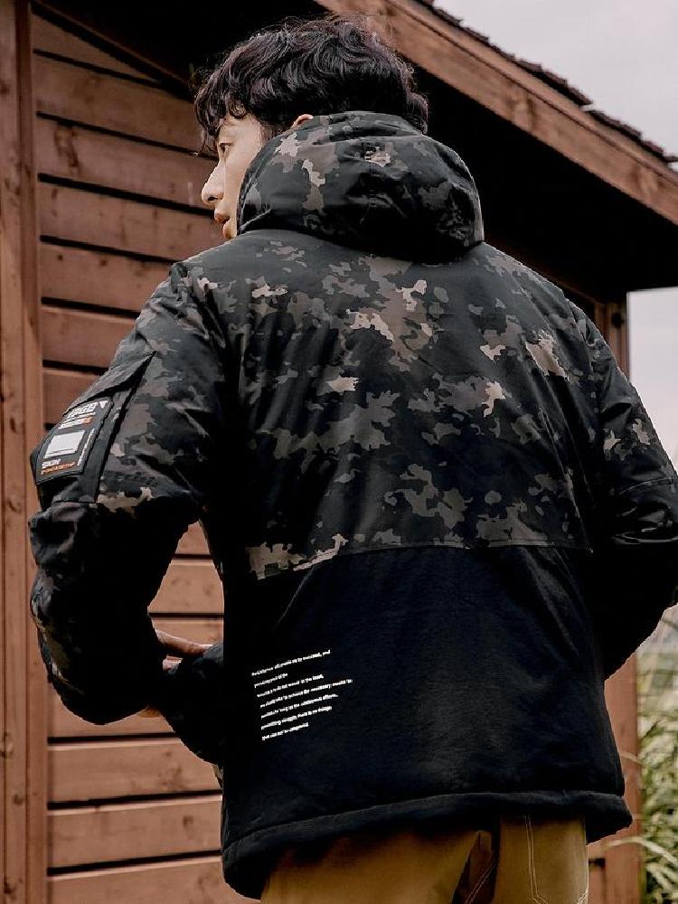 加厚棉服,为你带来一个暖暖的冬天;迷彩款式,时尚潮流;独特情侣款式,将暖暖分享给你的那个Ta吧!连帽服装减去了军装迷彩的那份严肃而带来青春活力的气质,戴盖挖袋设计方便独特。赶紧和Ta分享快乐吧