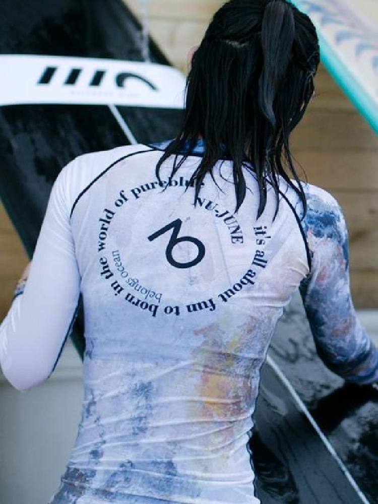 清新的用色尽显青春活力,加之别致印花的融入,时尚大气;选用亲肤面料经防晒涂层处理,兼具优异的透气速干性能,给予肌肤更为舒爽的呵护;长袖上衣经立体剪裁处理,弹力极佳,紧密贴合身体曲线,修身显瘦;且分体式短裤/长裤抑菌防臭,适用于漂流、冲浪等多种运动。