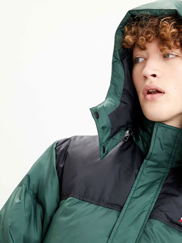 羽绒里衬的加入,增添温暖时尚的学院派风潮。腰间抽绳可自由调节松紧程度,增添设计亮点与保暖性能。