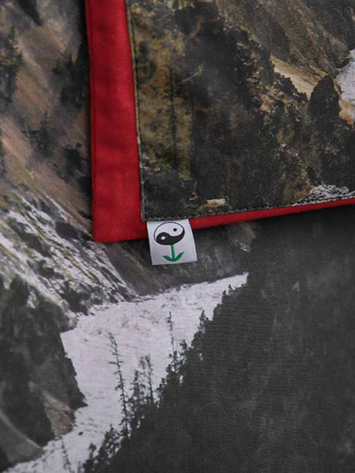 红色便是那种热热闹闹的亮眼的红,遇上冷色的瀑布一下子就协调了。