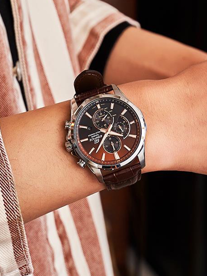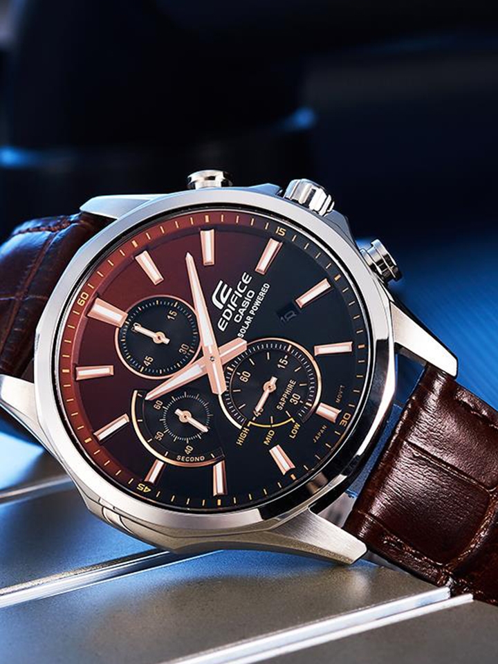 本款手表选用人工合成蓝宝石镜面制作,生活级防水耐刮耐用。石英机芯搭配太阳能动力,使其佩戴使用更加长久。