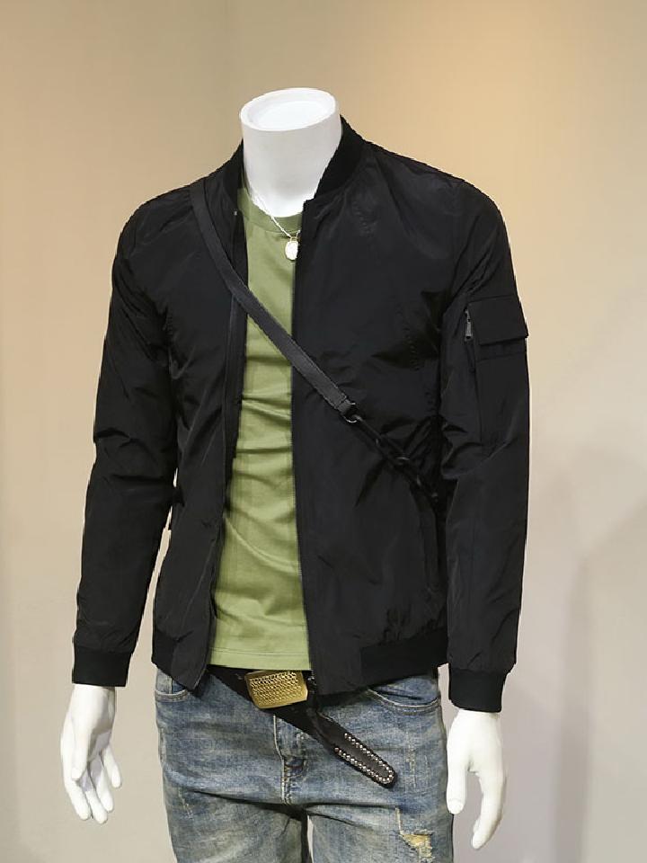 一款竖条纹的金丝绒修身棒球服,精湛的工艺和柔软的布料,穿着轻松舒适,独特的口袋设计,更个性时尚。