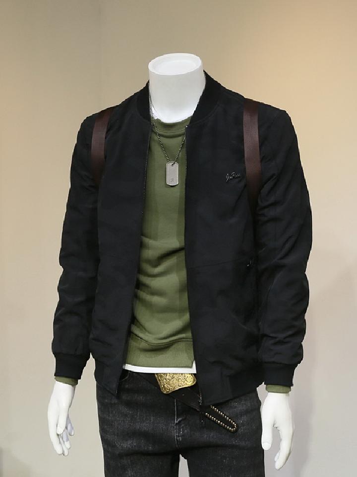 这件短夹克的棒性,是小立领设计的基础款棒球服,亮眼的地方在于衣服上的装饰拼接,加上毛边的处理时髦有型。