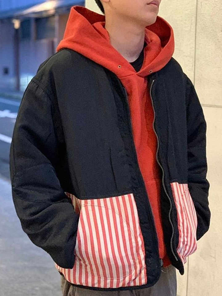 双面穿的夹克外套,外套质感轻柔丝滑,细腻保暖,休闲的版型设计,增添时尚运动风。以时尚的双面设计,让你里外随意穿着,潮流十足,一面是炫黑的配色,一面是条纹拼接的设计,让你风格随意转换。