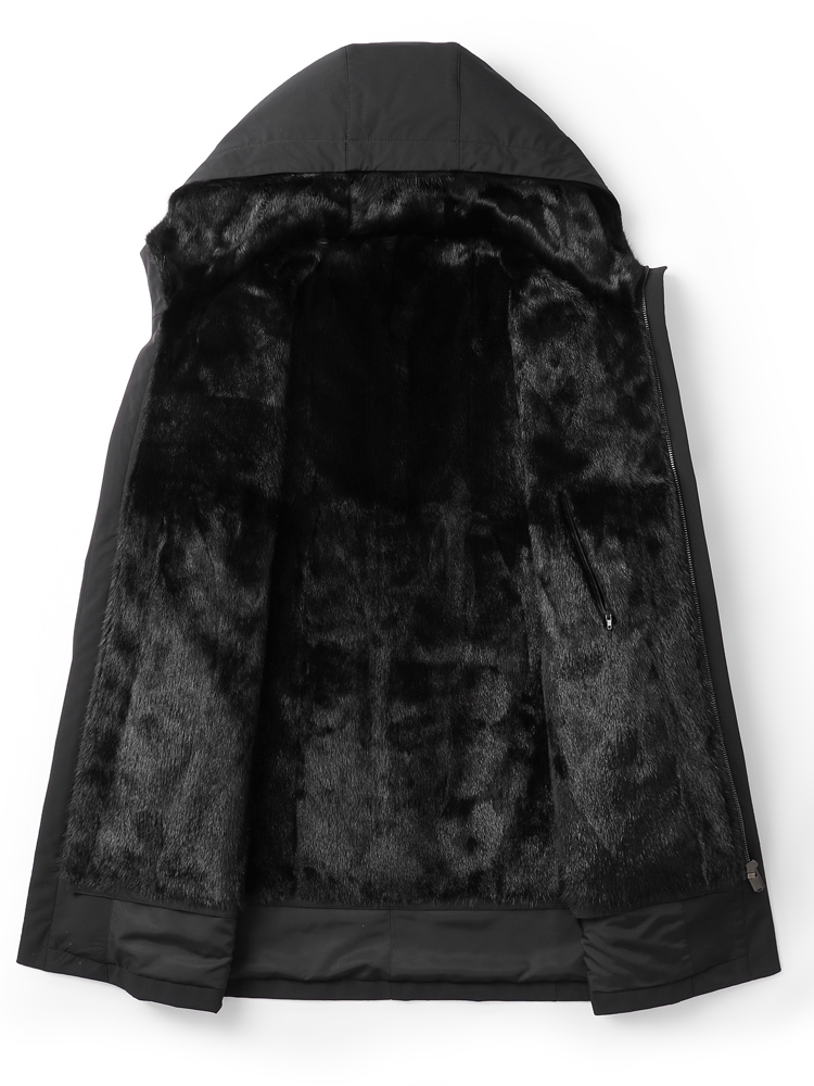优质的山羊皮面料,触感舒适柔软,纹理清晰大气彰显潮范;甄选优质的水貂毛打造出翻领,光泽感十足,上身尽显率性有型;内胆同样是选择水貂毛,保暖效果极佳!