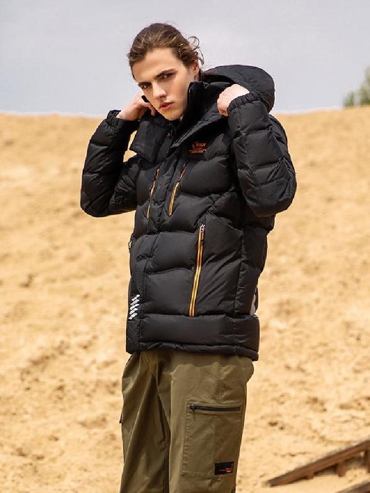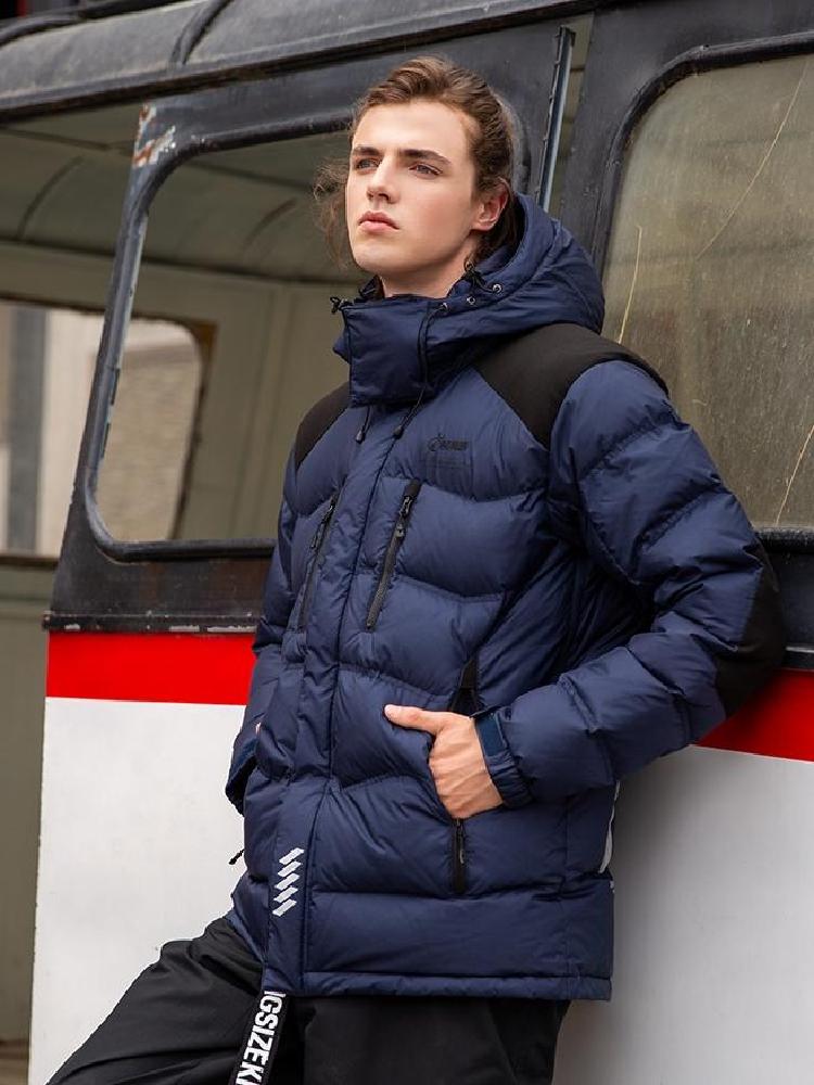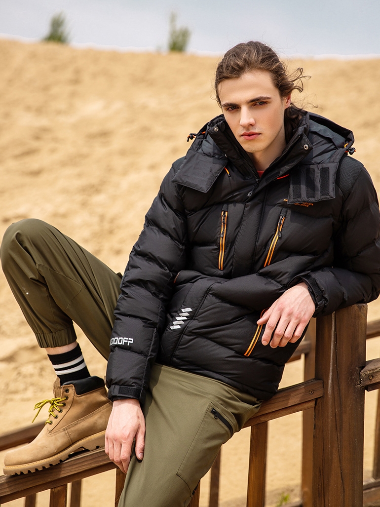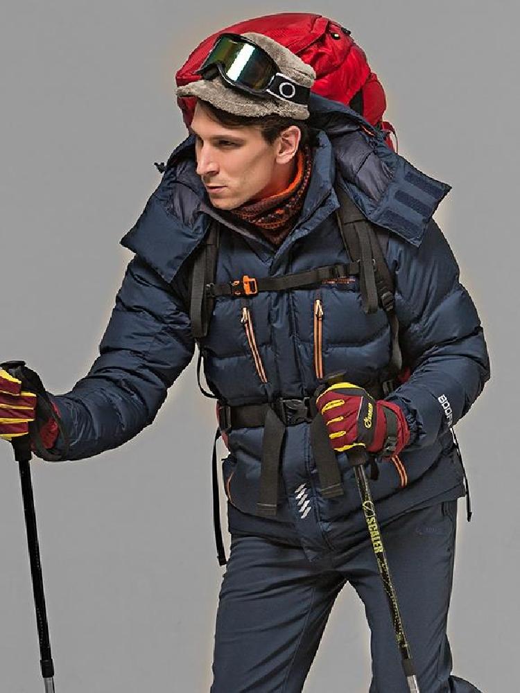 厚实保暖男士专业鹅绒服,适合较为高寒及寒冷环境,以高密度优质拒水鹅绒内填,将拒水和储热两种科技结合运用到白鹅绒中,到达高效保暖的效果,外层为深蓝色进口克隆面料,防钻绒防撕裂,创造出高品质羽绒服。