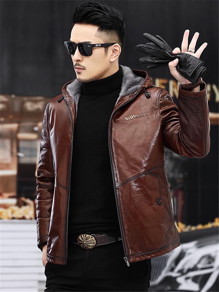 大衣连帽设计,防风保暖,宽松夹克版型,修身显瘦,皮衣款式,穿着帅气有型。