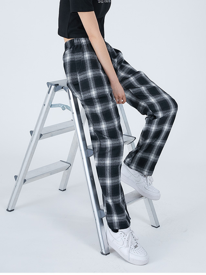 裤子为直筒版型,黑白格纹布满裤身,时尚美观,轻松演绎个性潮流。