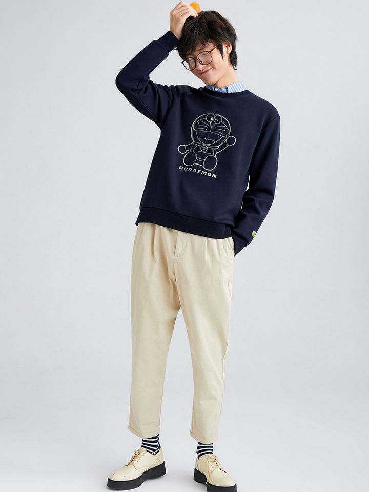 搭配时,不妨选择一件长裤,九分裤长裁剪,衬托出修长的腿型。脚踩一双小皮鞋,打造帅气潇洒的潮男造型。