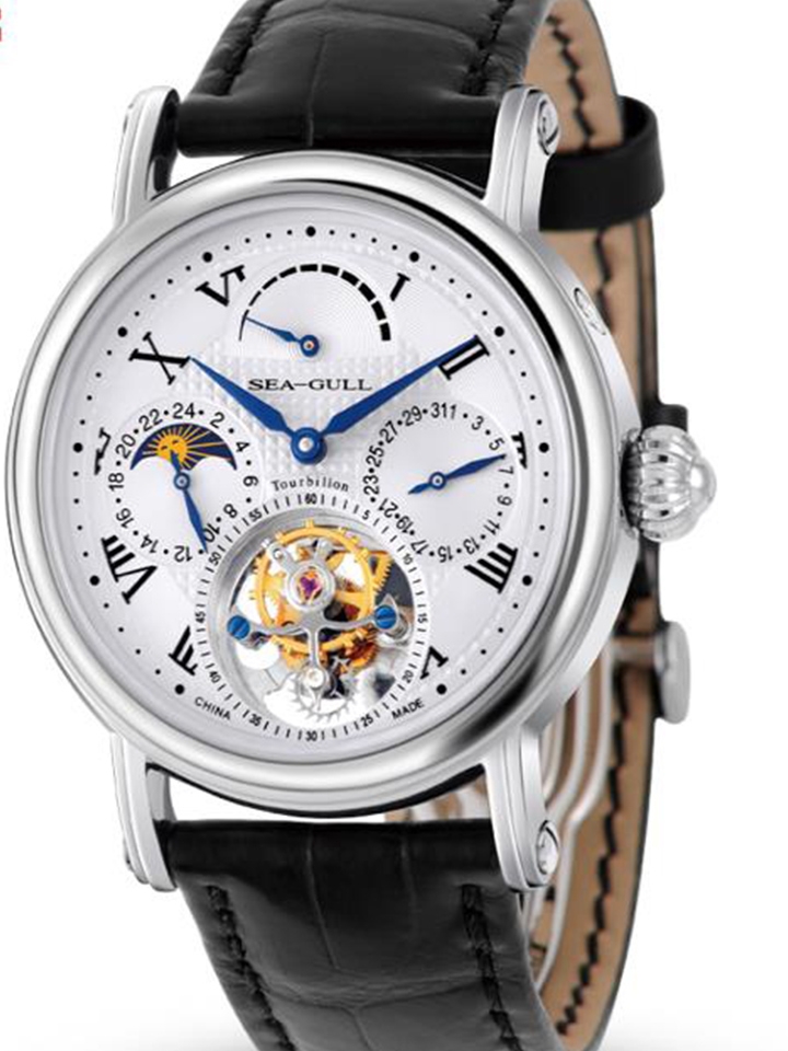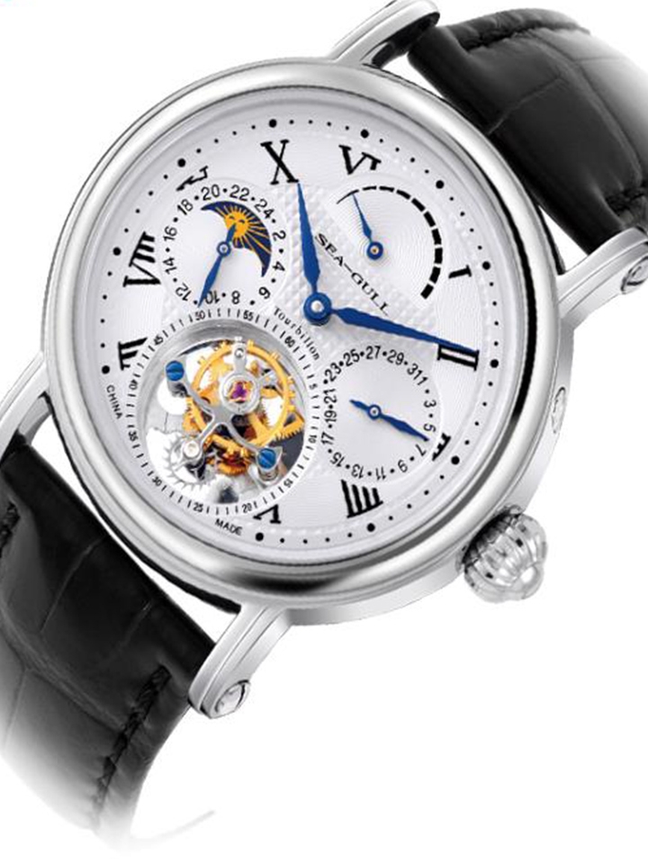 Seagull海鸥表,是创始于1955年的中国经典腕表品牌。这款陀飞轮系列的男士手表,采用了偏心陀飞轮机芯,走时稳定误差低,外壳的设计凸显硬朗的男士气概,煅烧蓝指针,简约低调不失时尚美感。