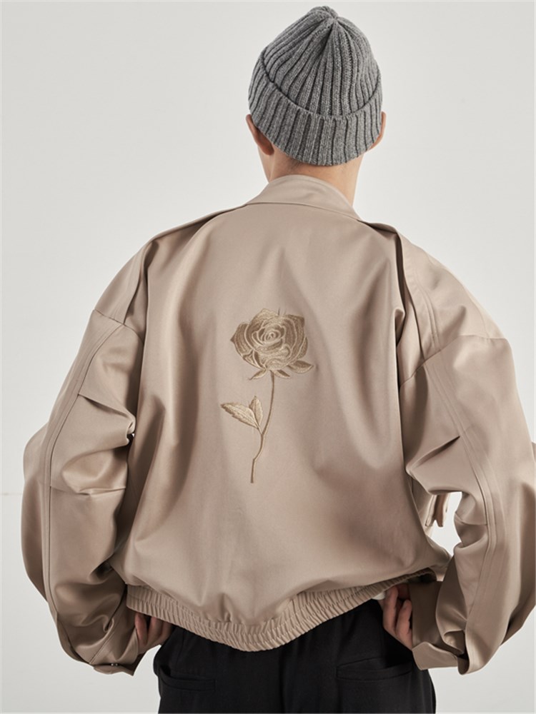 这款夹克采用了经典的棒球领设计,搭配上精致的刺绣图案,彰显了时尚的潮流感,