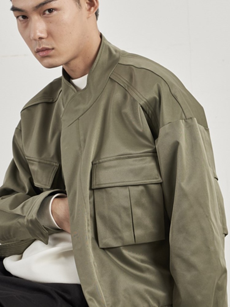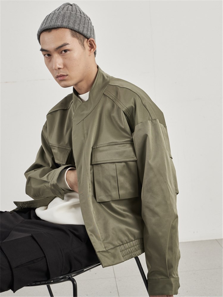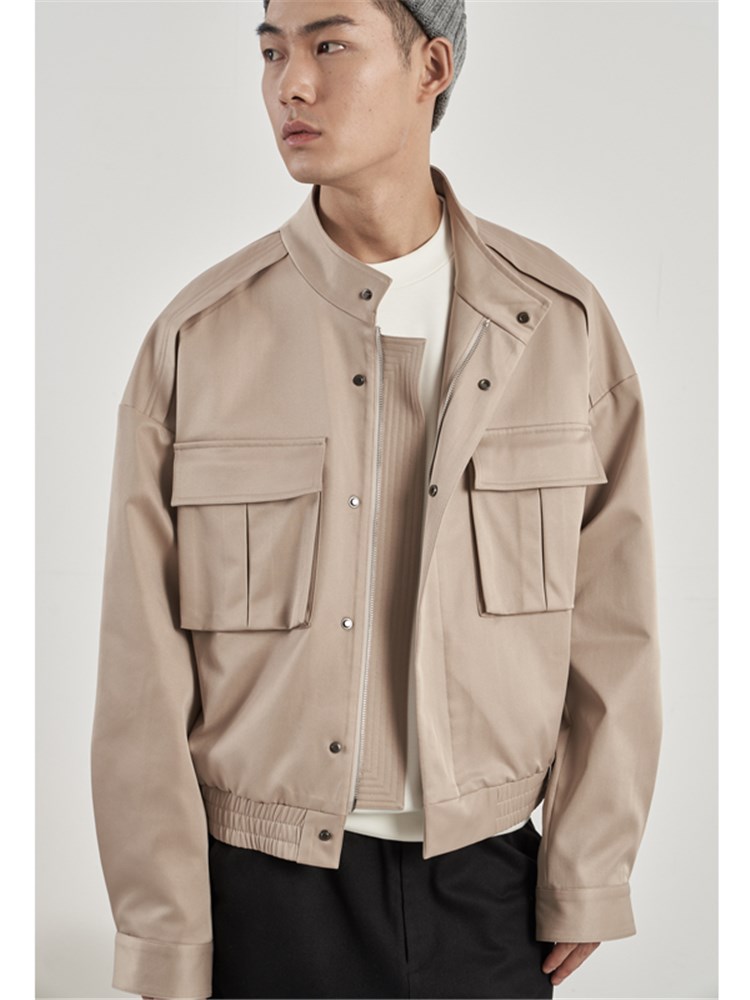 多口袋设计,工装风十足,宽松夹克版型,穿着舒适,短款外套,拉长身材比例。