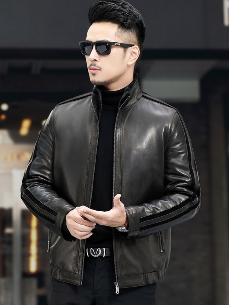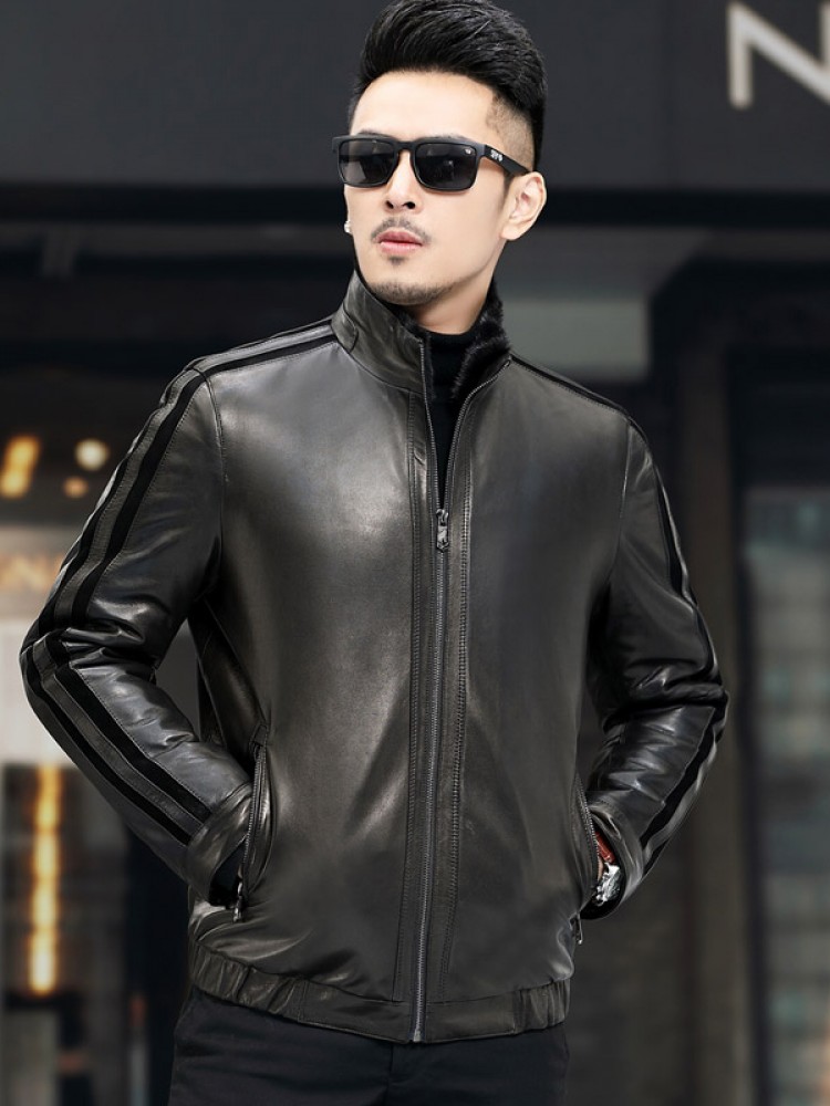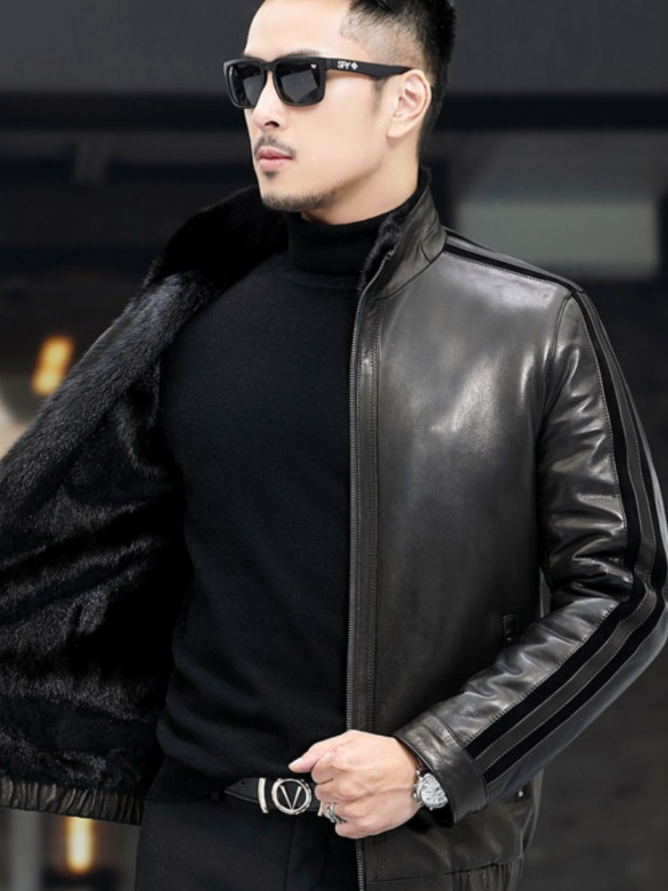 精选优质的绵羊皮材质,手感柔软细腻,穿着舒适保暖;经典的翻领设计,凸显男士的干练气质;衣身的立体剪裁,修身的版型,凸显男士的挺拔身姿。