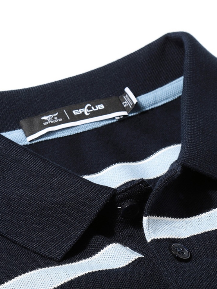 撞色拼接条纹,丰富视觉层次感,提升整体魅力,显瘦吸晴。采用经典翻领加上半开合纽扣设计,让穿搭更具造型感,凸显儒雅绅士范,衬托出干练利落的气质。
