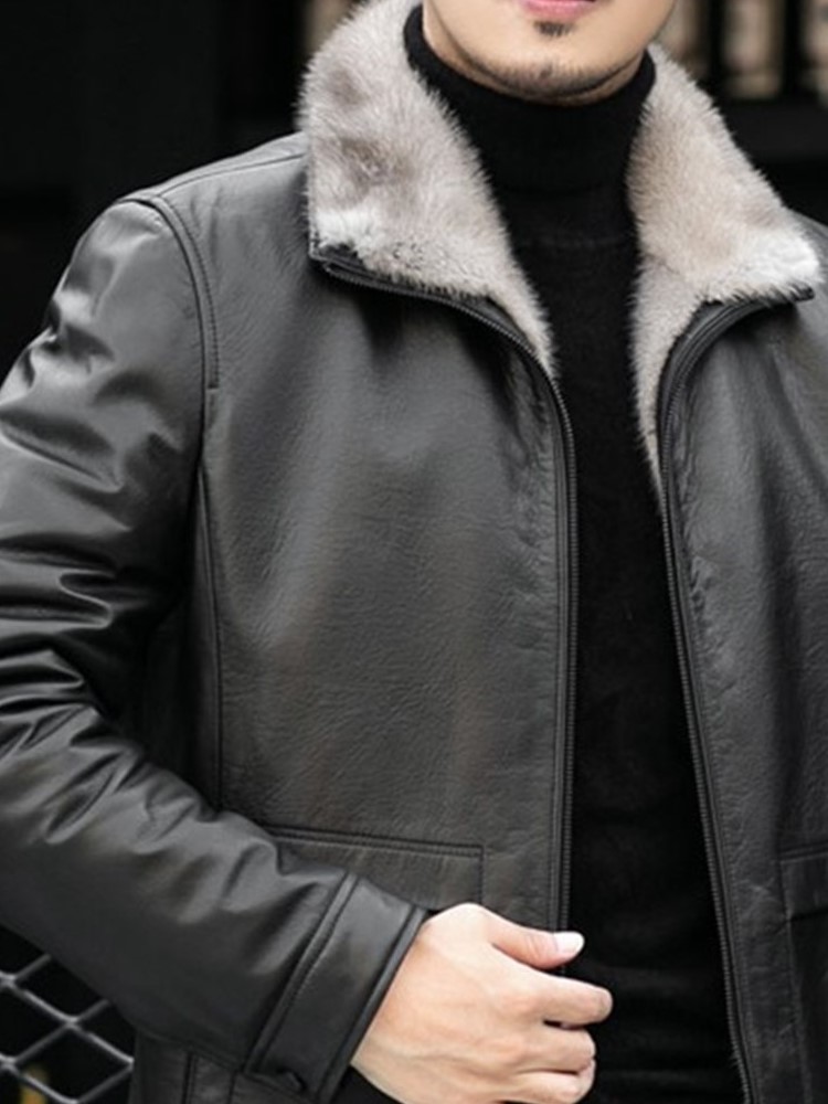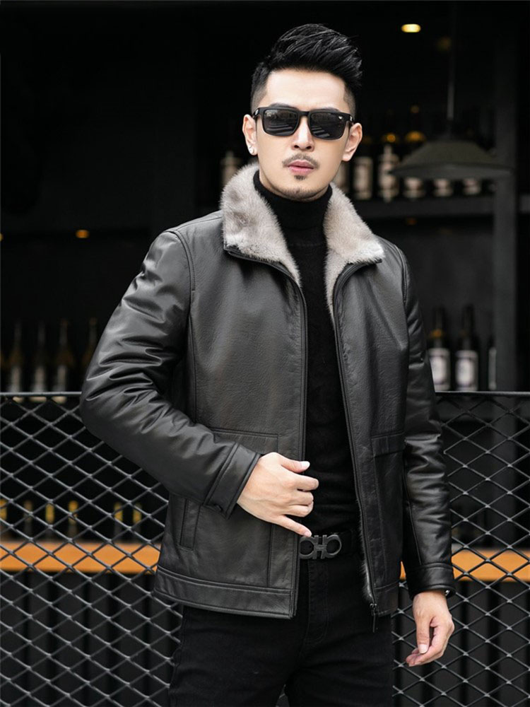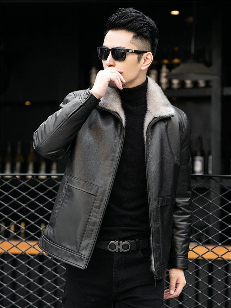 甄选优质的绵羊皮材质,手感柔软细腻,穿着舒适保暖;衣身的拉链设计,方便实用,美观实用。