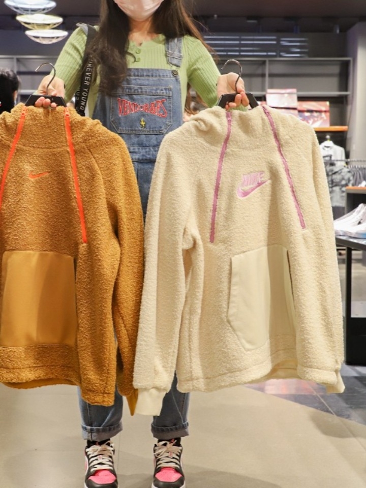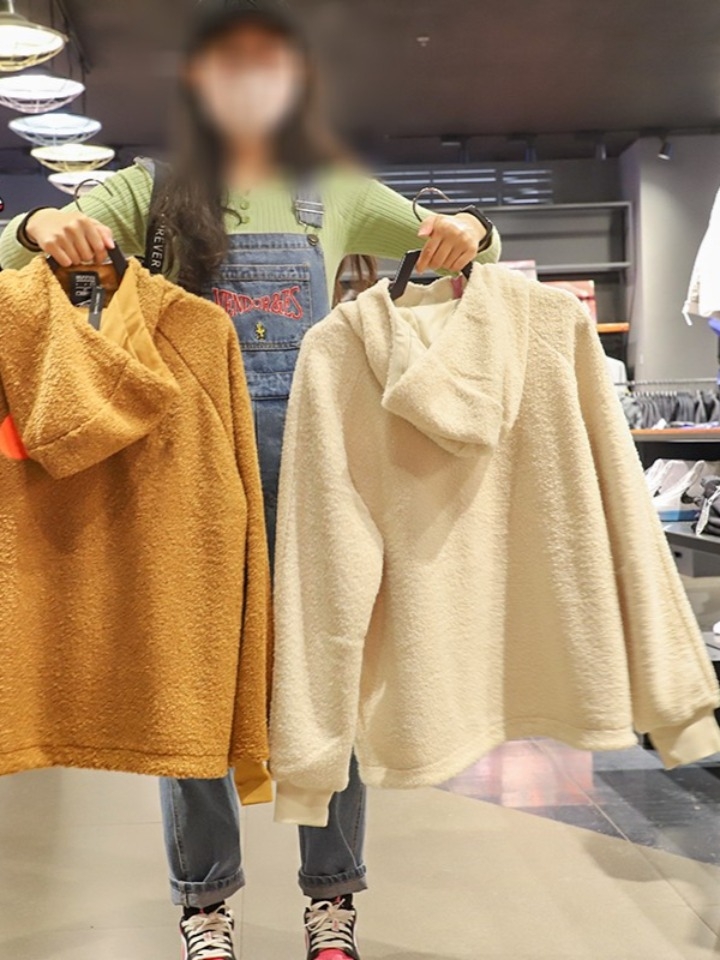圆领设计,舒适耐磨耐穿;肩部挺括,光看不穿也挺括。羊羔毛材质,保暖性好。整体简约又不失可爱,两色可选,上身效果很好。
