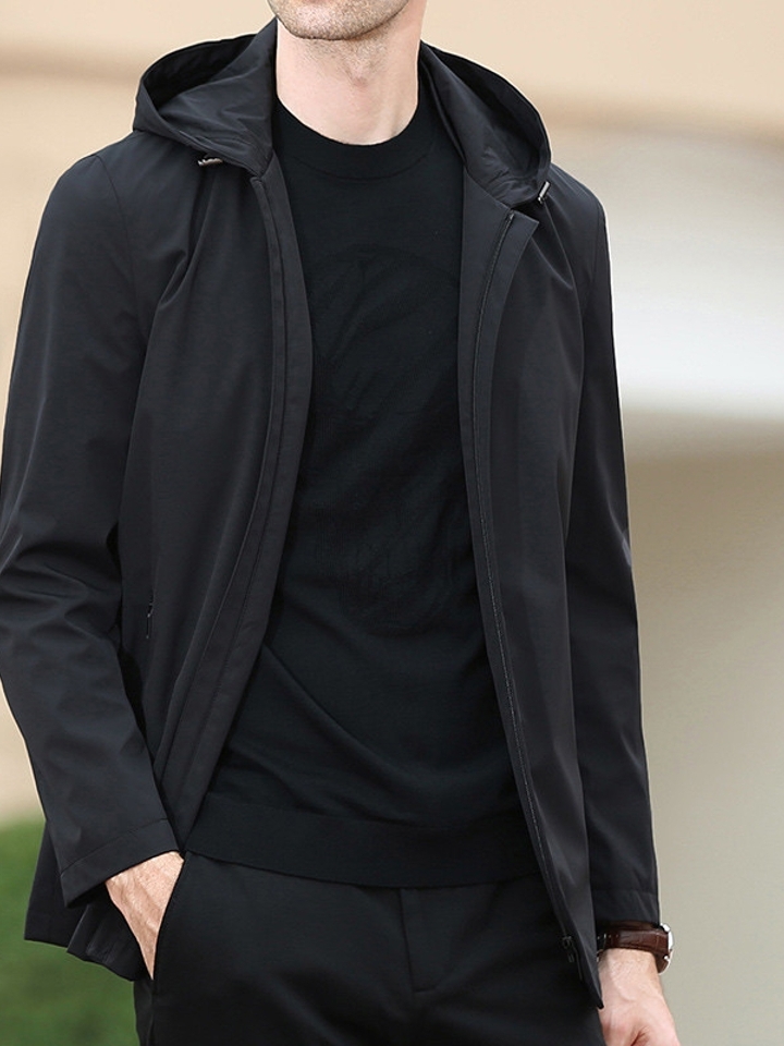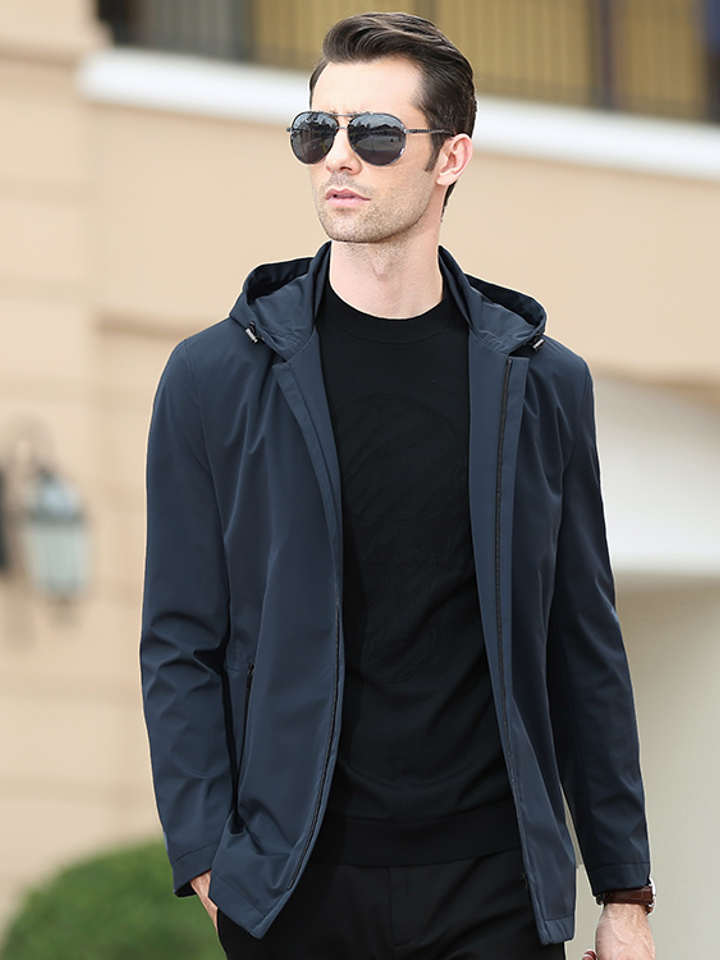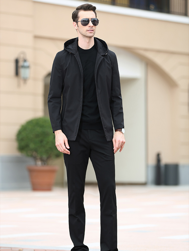 本款男士夹克采用优质进口面料,坚牢抗皱;时尚立领设计,精雕细琢,细致剪裁体现完美的优雅弧线;