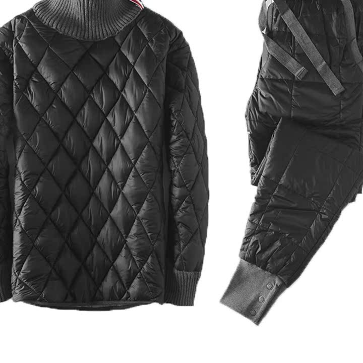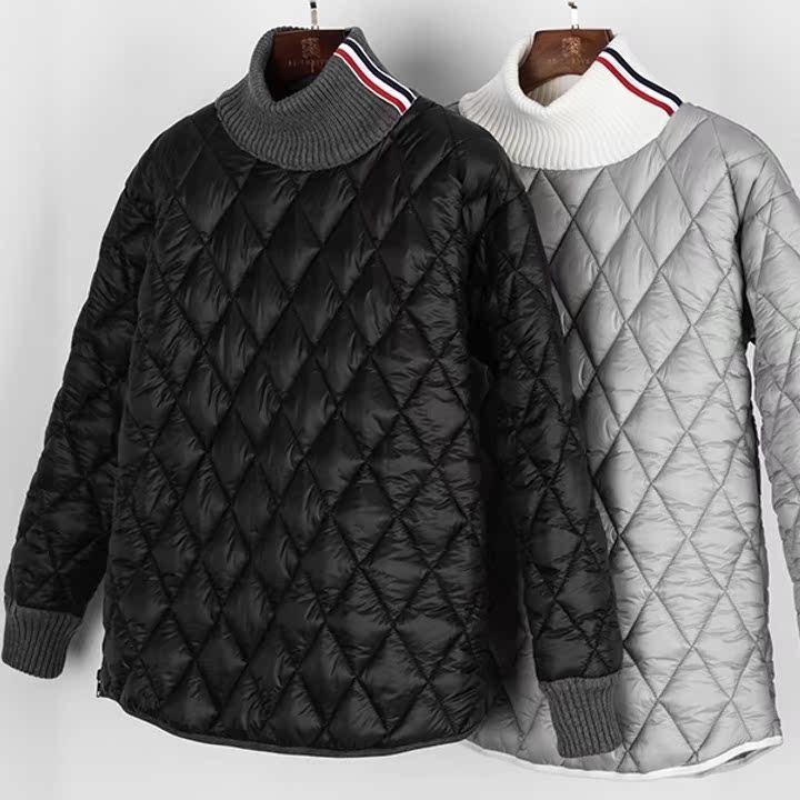 高领螺纹拼接,搭配菱格纹缝制,收口衣领及袖口,防风保暖,精致更时尚。