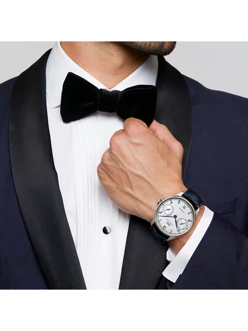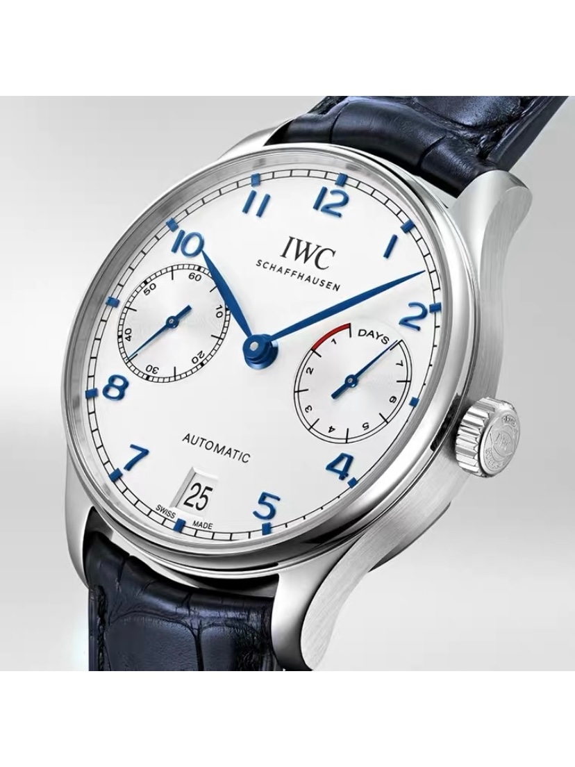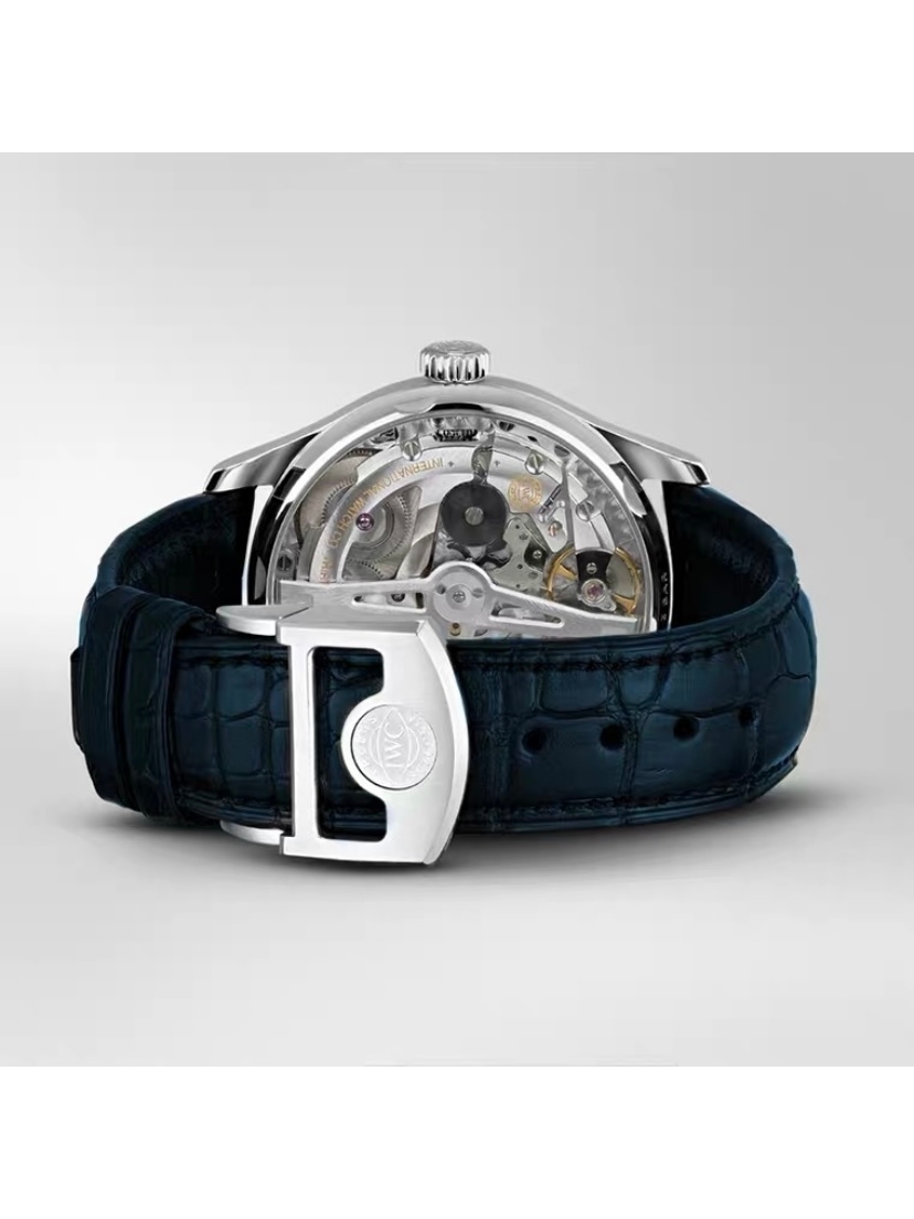 蓝色鳄鱼皮的表带,质感细腻又柔软,搭配浅银色的表盘,彰显含蓄,典雅又大方的时尚腔调。