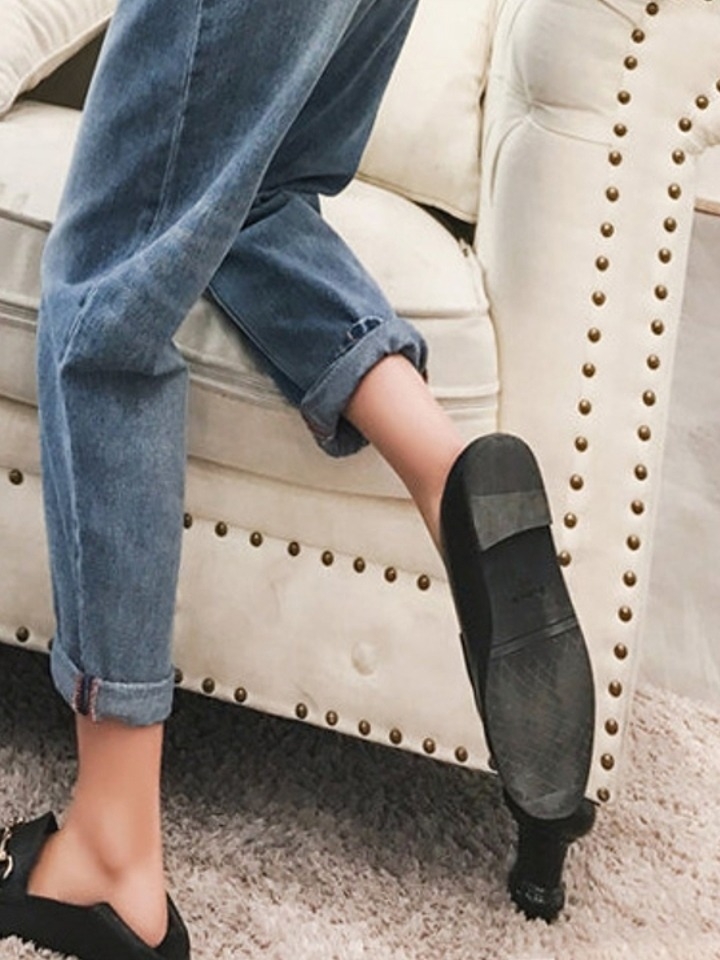 九分哈伦牛仔裤,穿上露出一截脚踝,非常显瘦显高挑,高腰的款式,非常舒适,休闲风格很百搭。