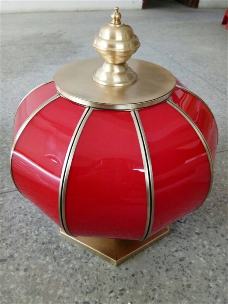 灯笼的造型,寓意着非常吉利的祝福。全铜打造灯体各个部分,坚固耐用,承重力强,并且设计上非常精致,全铜色也非常美观大气。布艺灯罩为整体造型增添了柔美秀雅,光线也更加柔和。