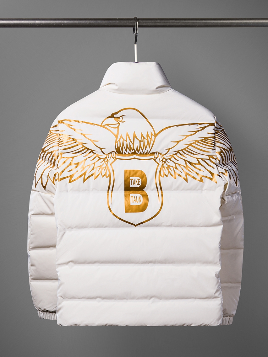 短款的羽绒服,摆脱大棉被的束缚,视觉上拉升曲线,让你身高up up up,面料在阳光下bling bling的效果,非常赞哟。