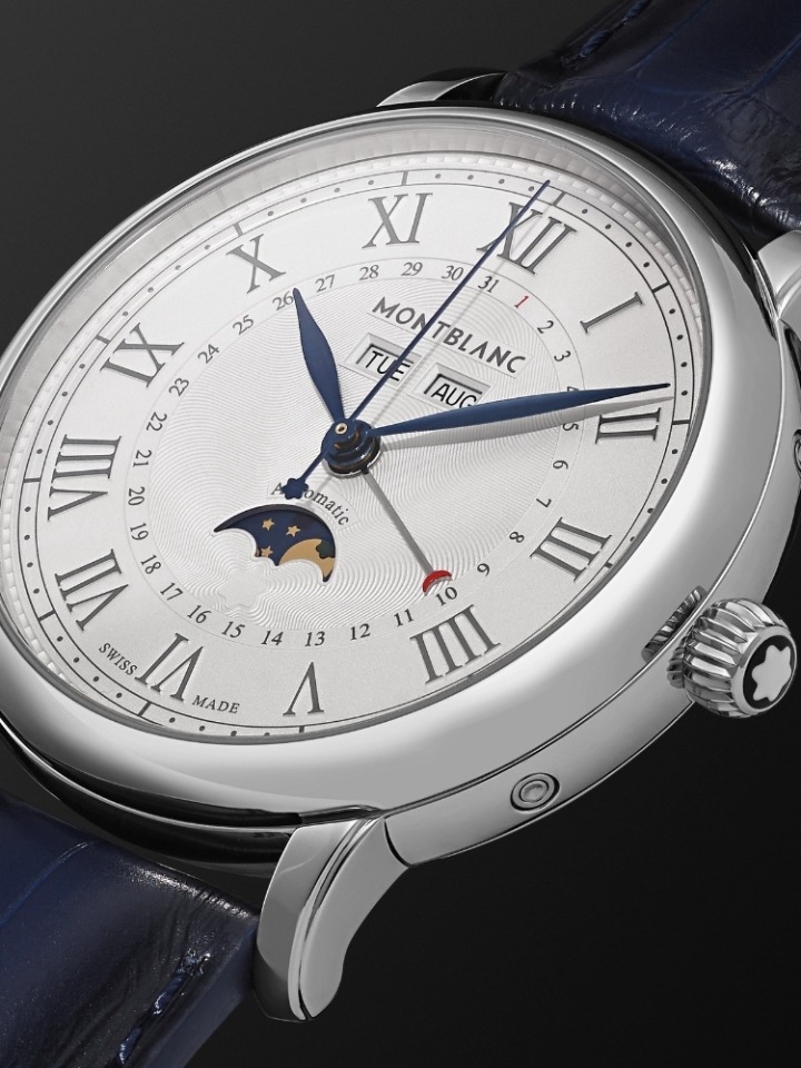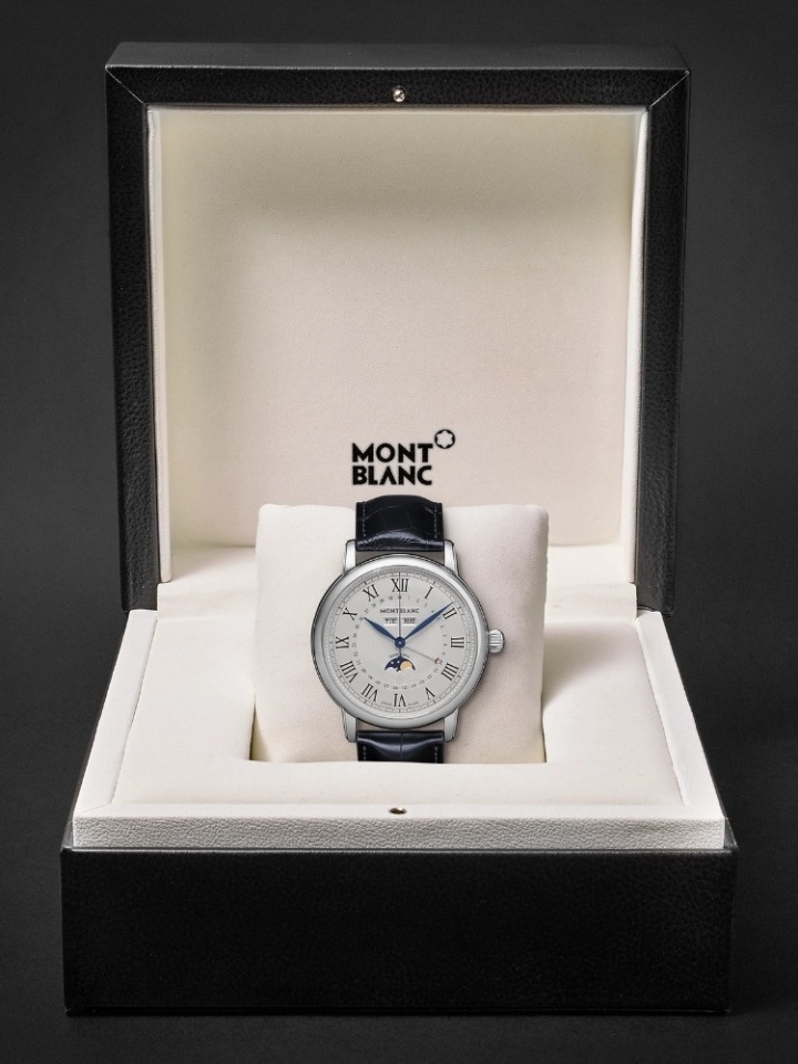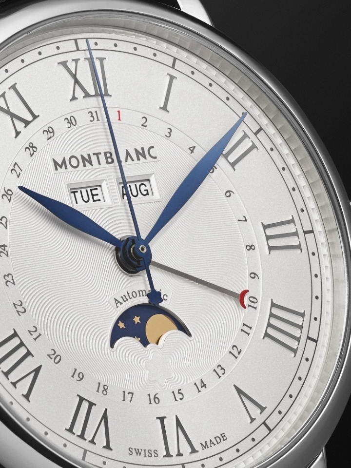该款万宝龙明星经典系列钢带男表 银白色圆形表盘,内附三个小表盘和表内数字的有意缺失,显得错落有致,别出新意。搭配银白小方格组成的优美弧度表带,浑然天成,与表身融为一体 又不失优雅高贵。