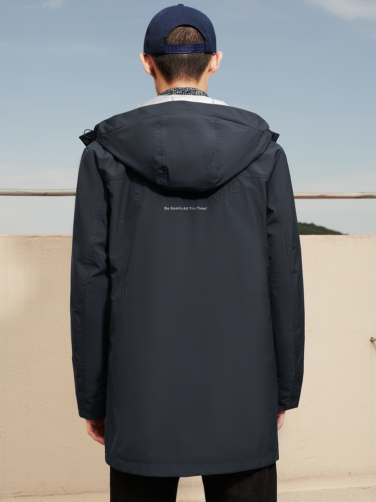 这款羽绒服采用时尚的连帽设计,衣领处的字母设计,让衣服整体呈现出时尚的感觉。经典的拉链设计,使人穿着起来非常方便。收口的螺纹袖口设计,让衣服在保暖的同时,还能起到防止衣袖上缀的效果。衣服整体显出修身效果,可以完美的衬托出男人的身形。