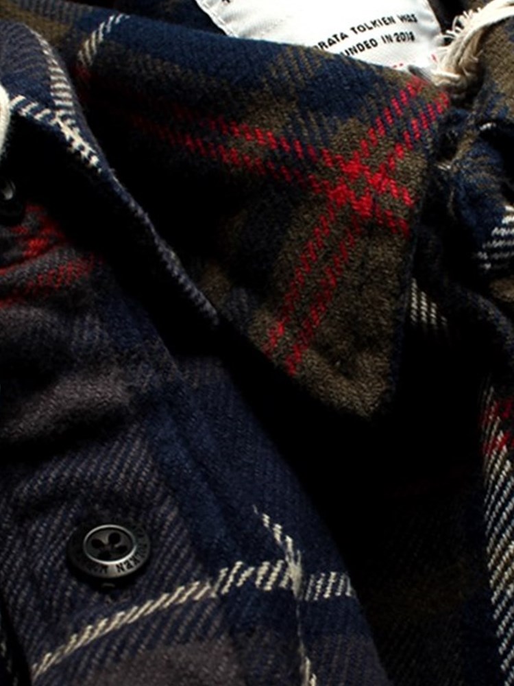 多口袋设计,工装风十足,宽松版型,穿着舒适自在,衬衫翻领,修饰颈部线条。