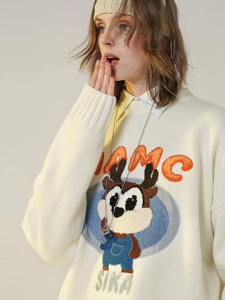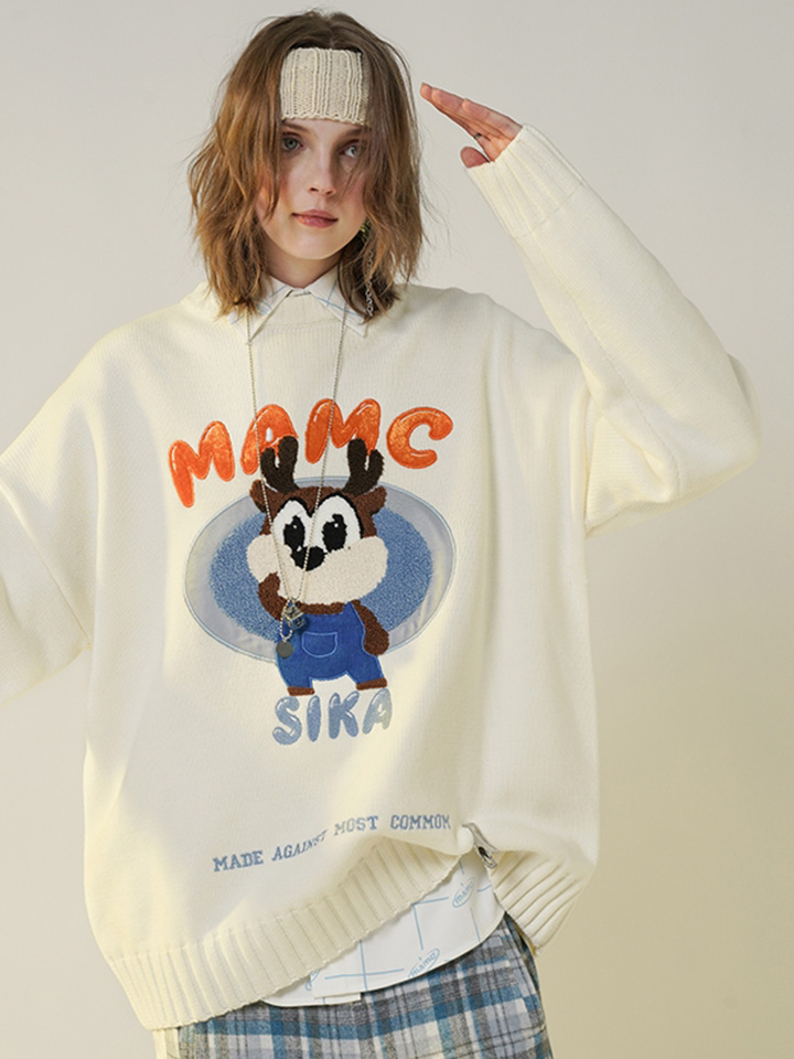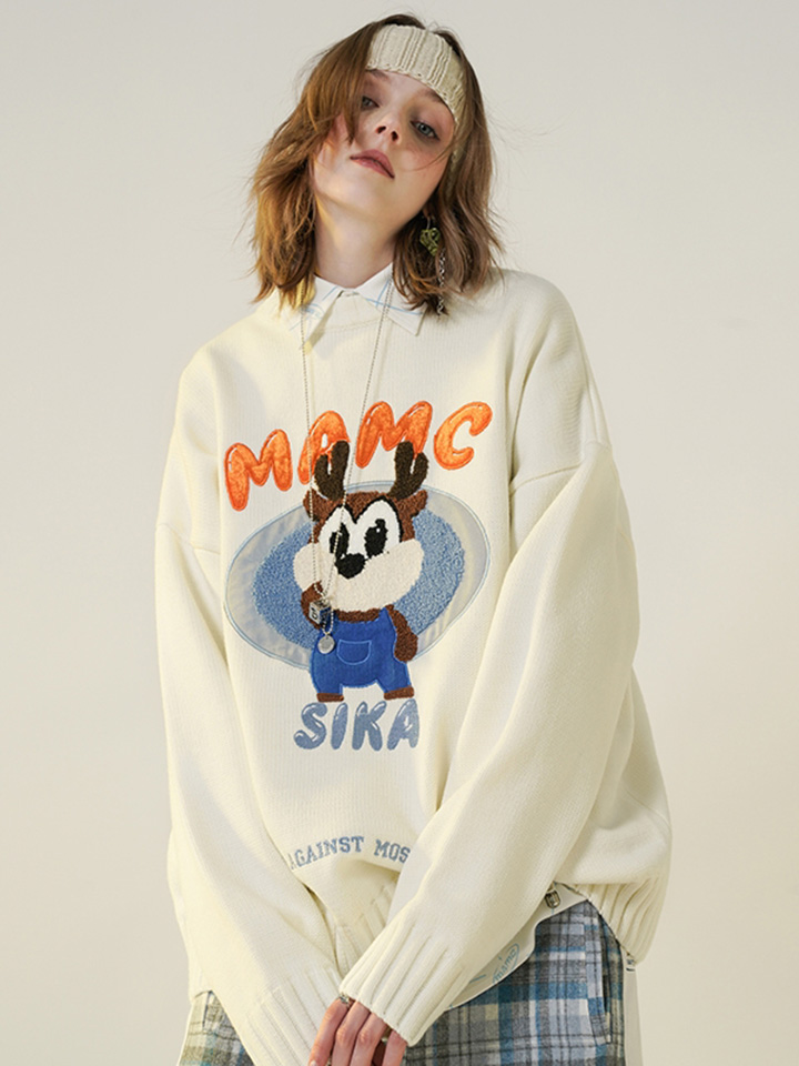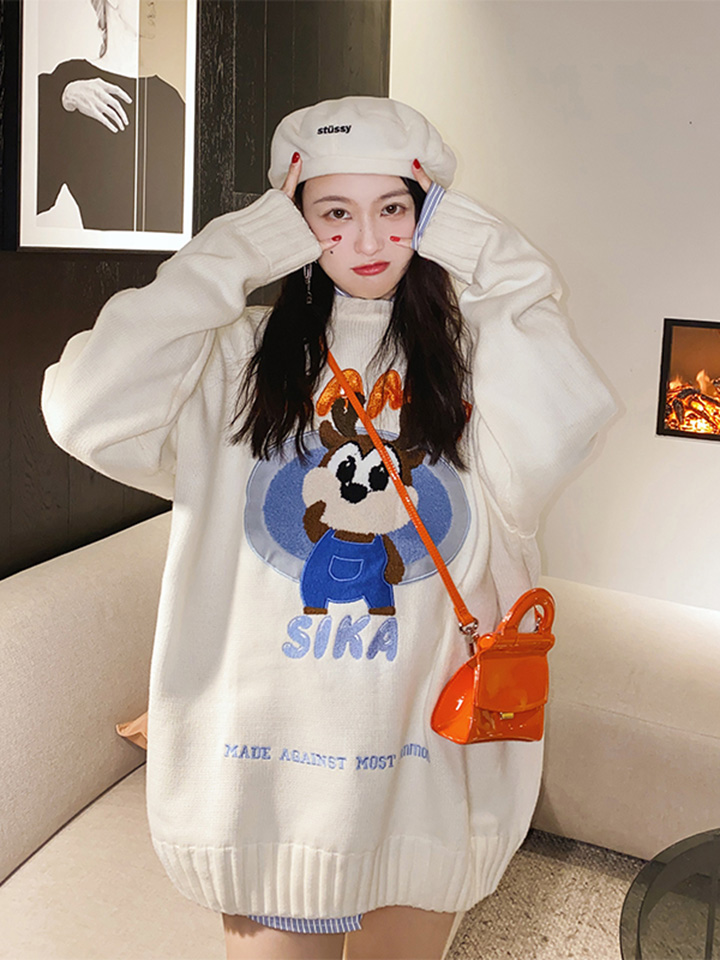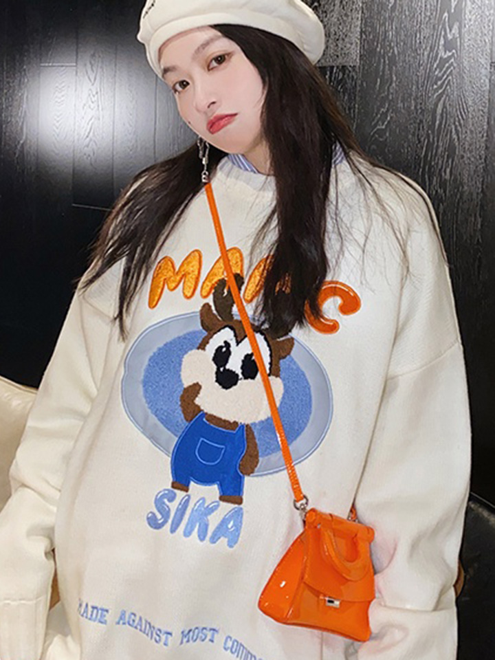 毛衣特别采用了可爱的卡通造型图案,十分有灵气感。