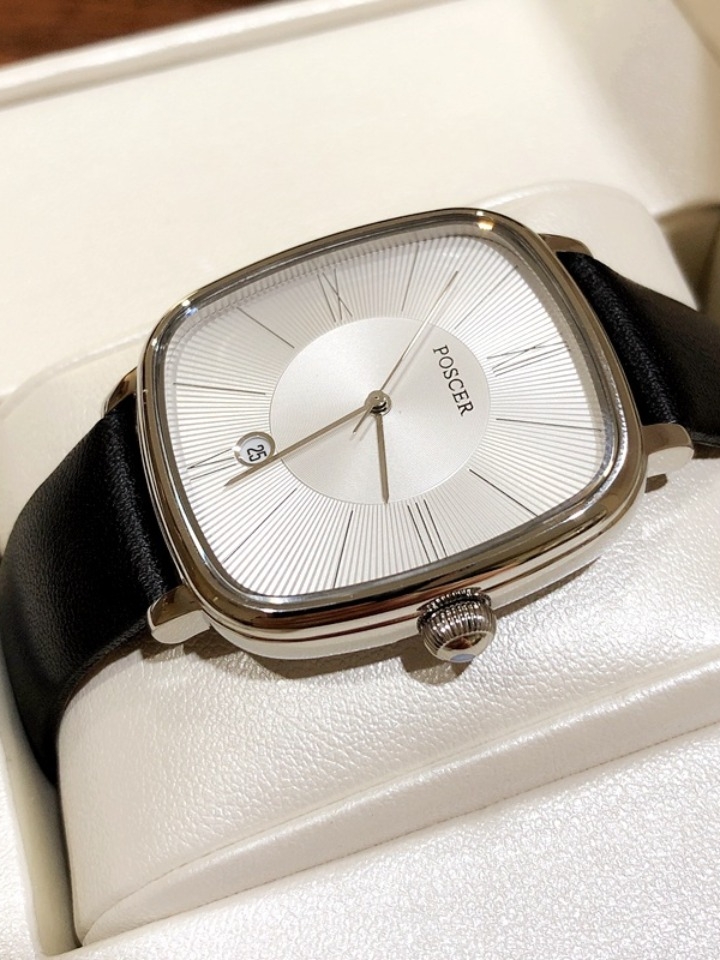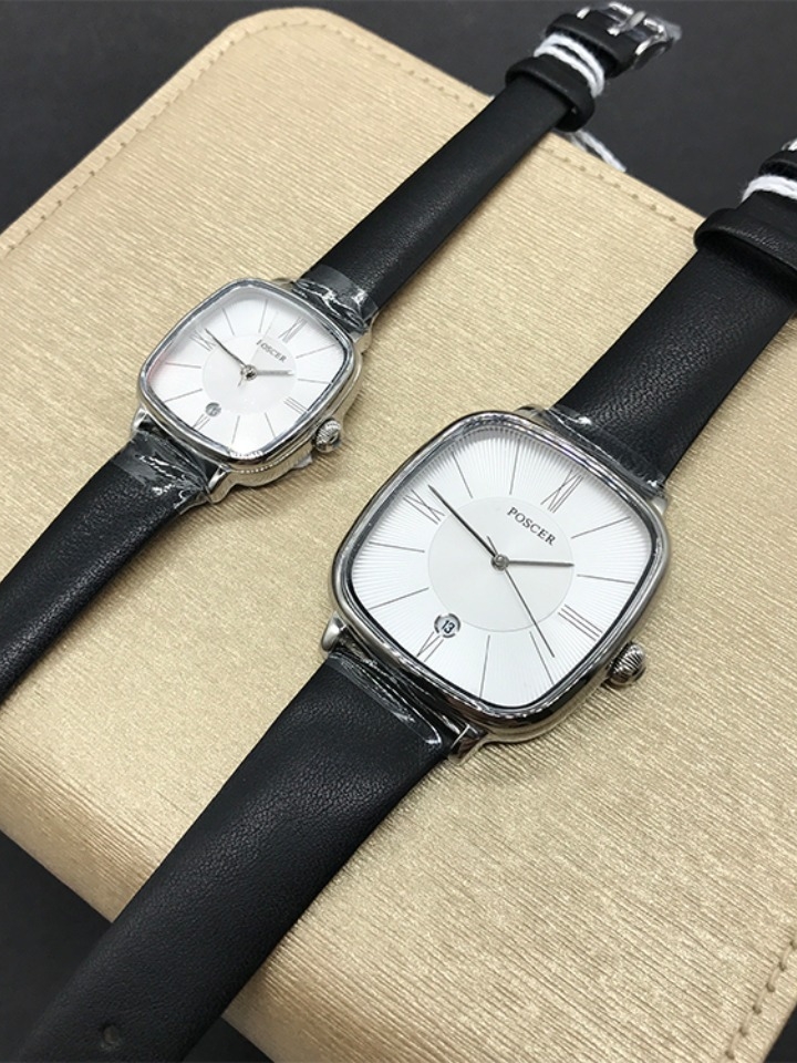 简洁复古风格的情侣款休闲石英手表,乳白色的表盘三指针在不停转动,卡其色的真皮表带更显绅士品味。优质石英机芯走时更加精准,不必当心校时不准的问题。