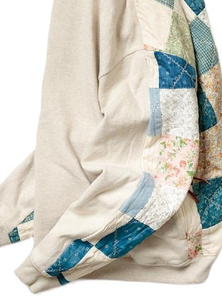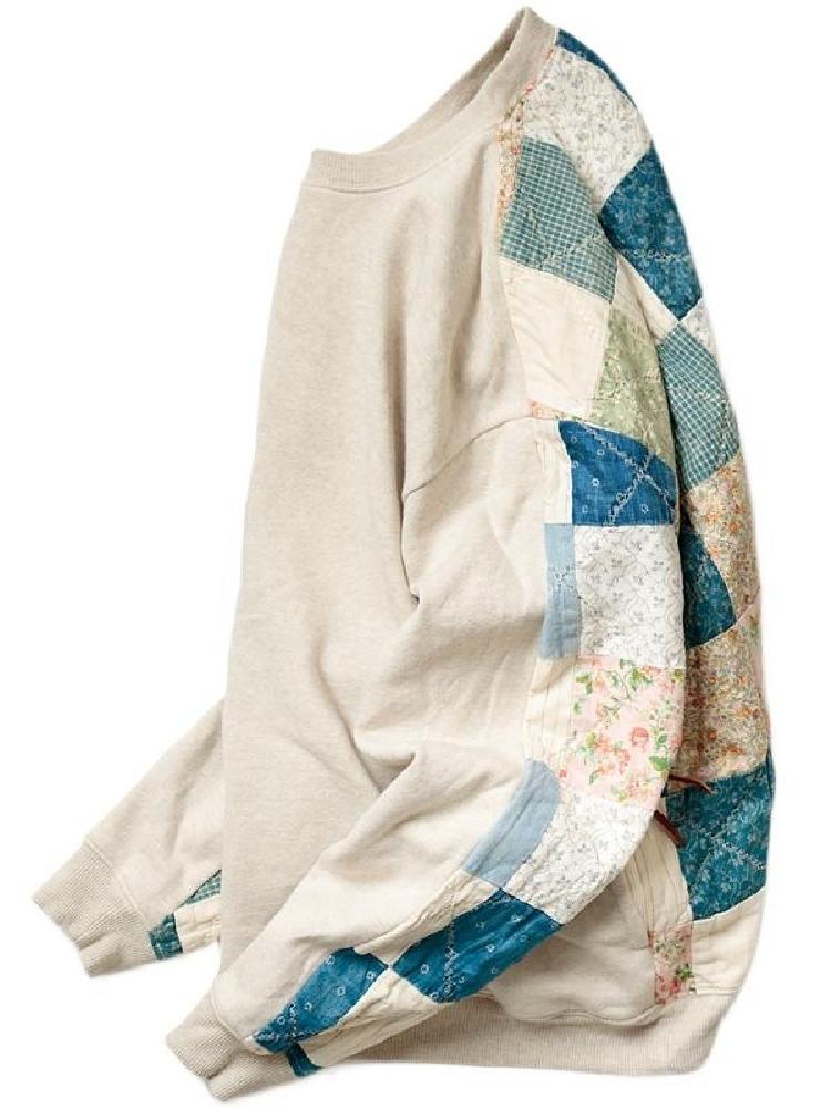 格子压褶拼接设计,格子拼接假袖,给人假两件视觉效果,略微宽松的版型,不管是做内搭还是单穿都是没问题的