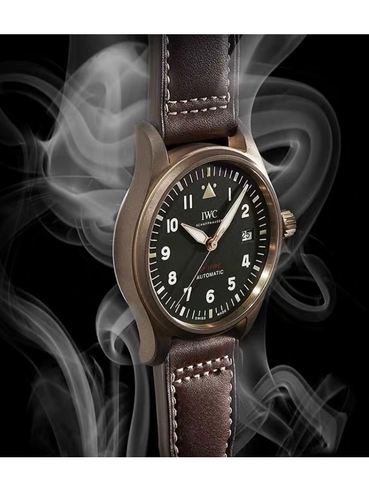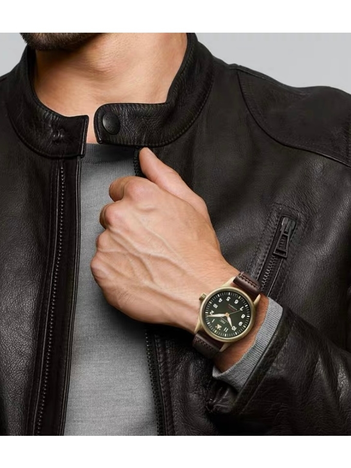 喷火战机飞行员自动机械表,采用了简约仪表式表盘的设计,搭配简洁阿拉伯数字时标,方便读时,实用性强。