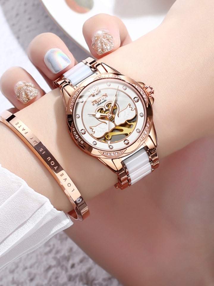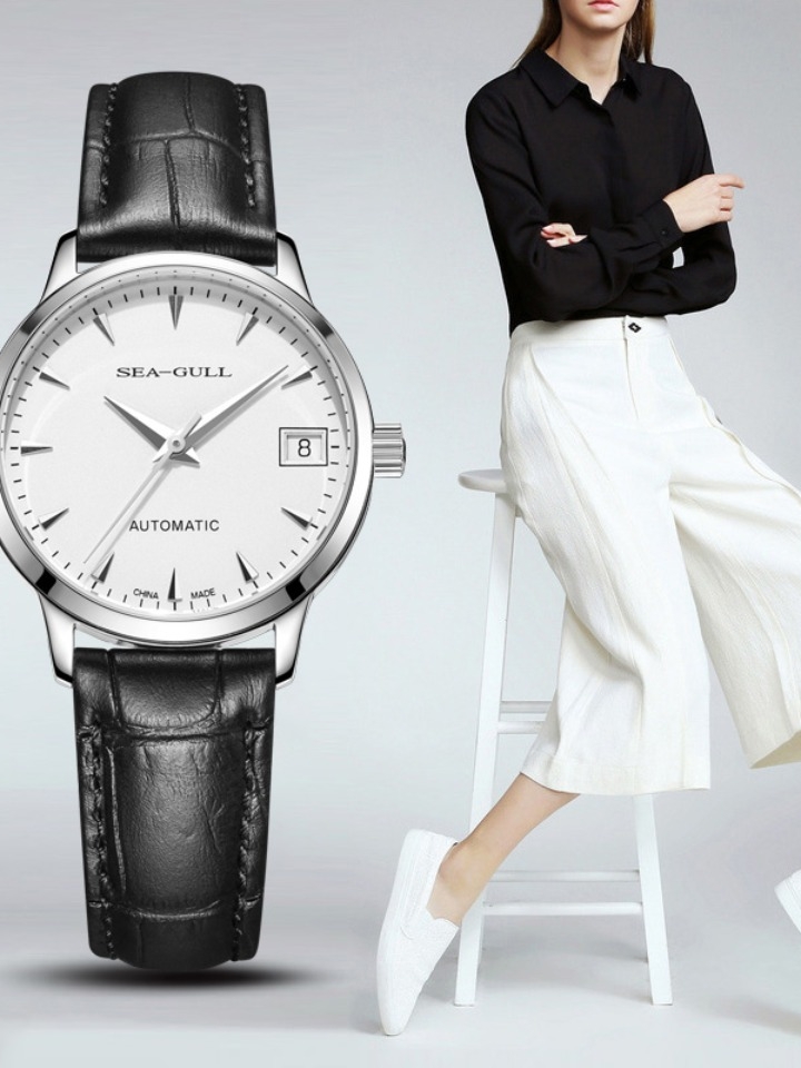简约圆形表盘,散发优雅女人魅力。清晰分针指示,能更好的把握时间。人工合成的蓝宝石表镜,耐磨性好。