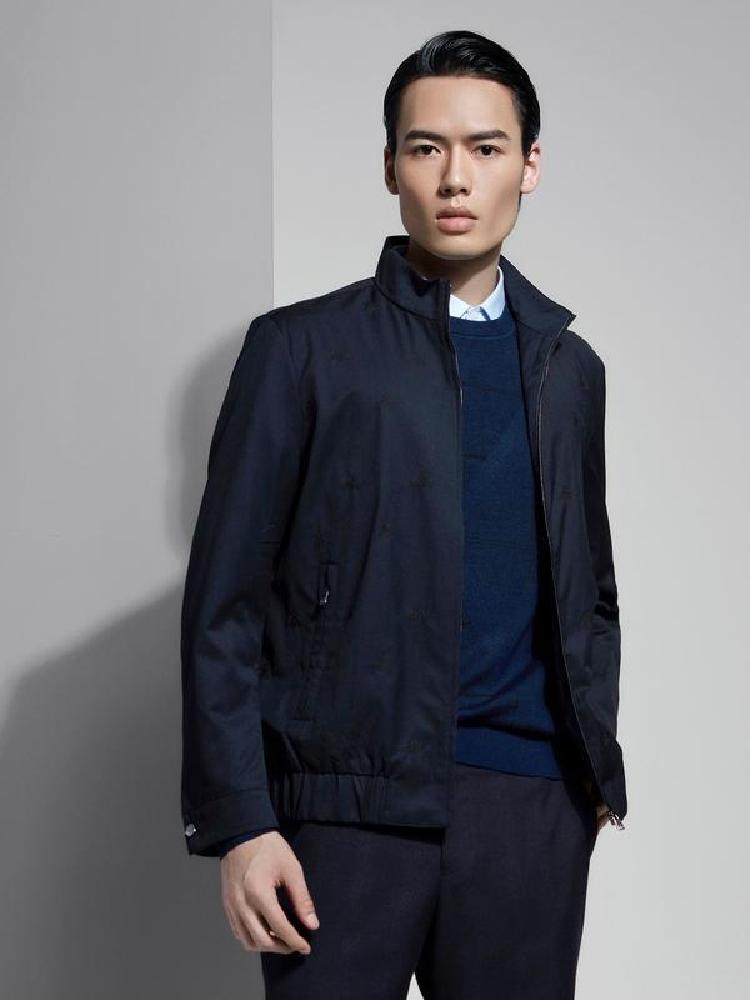 商务薄款男士夹克,精选优质面料裁剪,迎合挺括的体型设计,为你打造出一款帅气夹克,凸显出爽朗干练的气质,夹克的最大亮点就是采用明线绘成的几何格子,简约而美观,穿着凸显出成熟感。