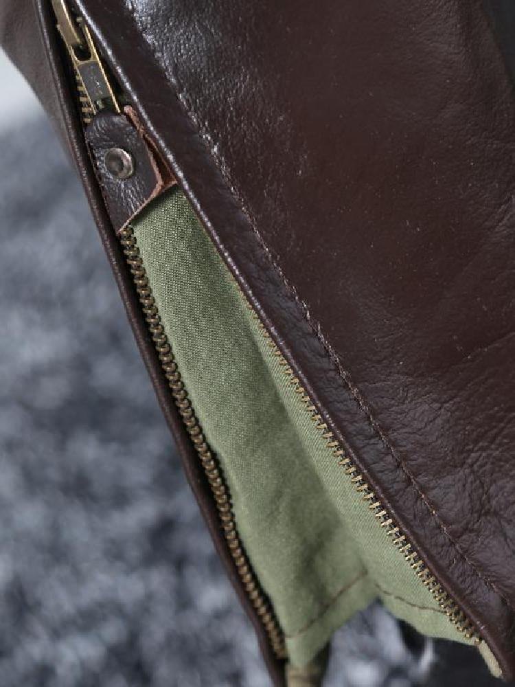 经典不易过时的美国G1风格空军飞行服皮夹克,采用皮料厚实手感柔软的进口纯牛皮,更加防风保暖;欧美风格飞行服标准口袋设计,上方为带盖口袋,侧面料斜插式口袋,美观实用;可拆卸纯羊毛真毛毛领,简约大方,彰显了穿着者饱满的精神面貌。