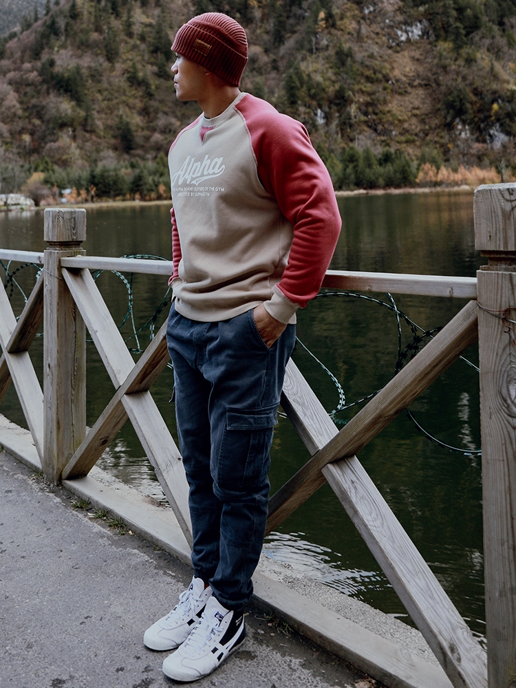 精选精棉混纺加绒面料,内层采用摇粒绒,触感柔软舒适,且快速发热,在冬季穿着十分舒适,厚实又紧致。外部手感柔软,透气性较好但不透风。