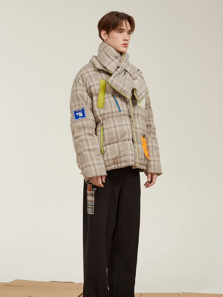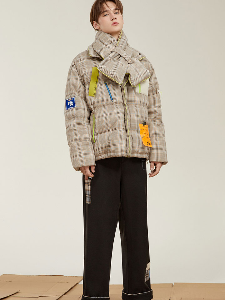 格纹设计,简约时尚,惹人注目。时尚衣领设计,柔软温暖。