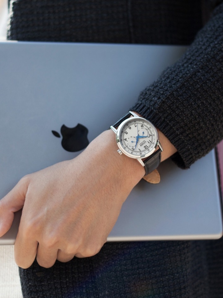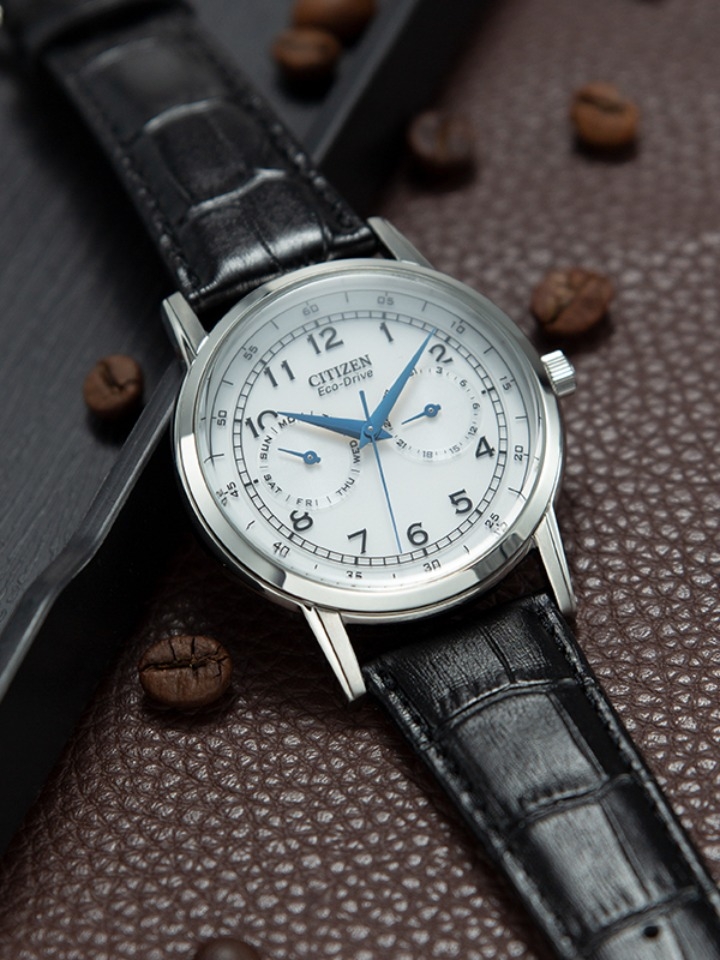 当手机没电,而行程还未开始时,你就需要一款可以吸收任何可见光源并转化成动能来带动手表的运转。这样的处理可以说是真正的环保产品,不仅无需定期更换电池,也给佩戴者带来了极大的方便。而且这款手表的蓝针设计与表盘的撞色处理,更显吸睛亮眼,只是放在那里就足够引人留目。更何况与盈盈手腕相配的它。