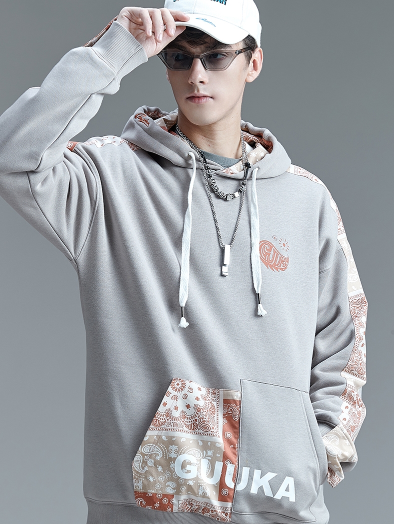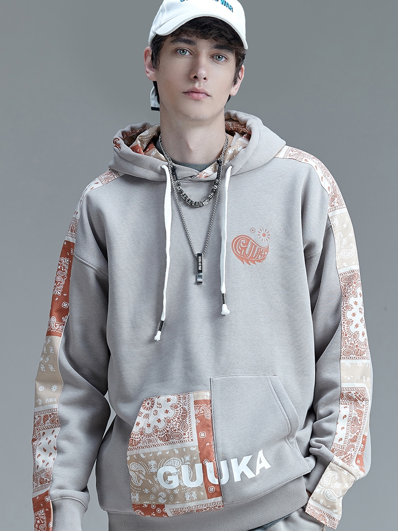这款卫衣采用双层复合工艺,具有防风防皱折、保暖耐、触感柔软穿着舒服等特性,设计师采用特别裁剪拼接设计,能有效锁住温暖,对抗严寒。下装配以合体长裤、高帮鞋,摩登有型的潮人印象脱颖而出。
