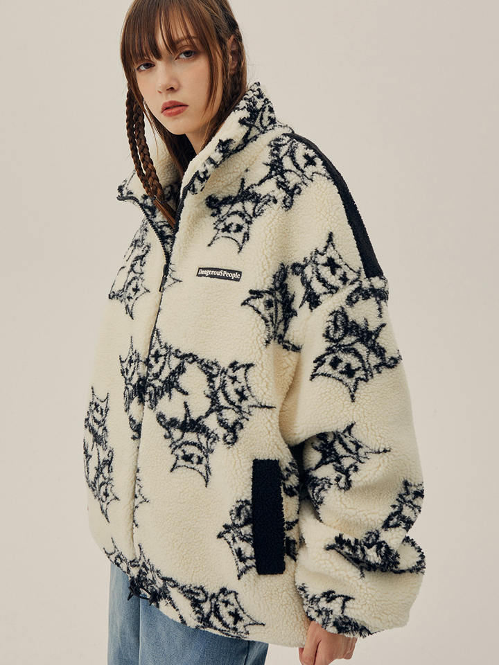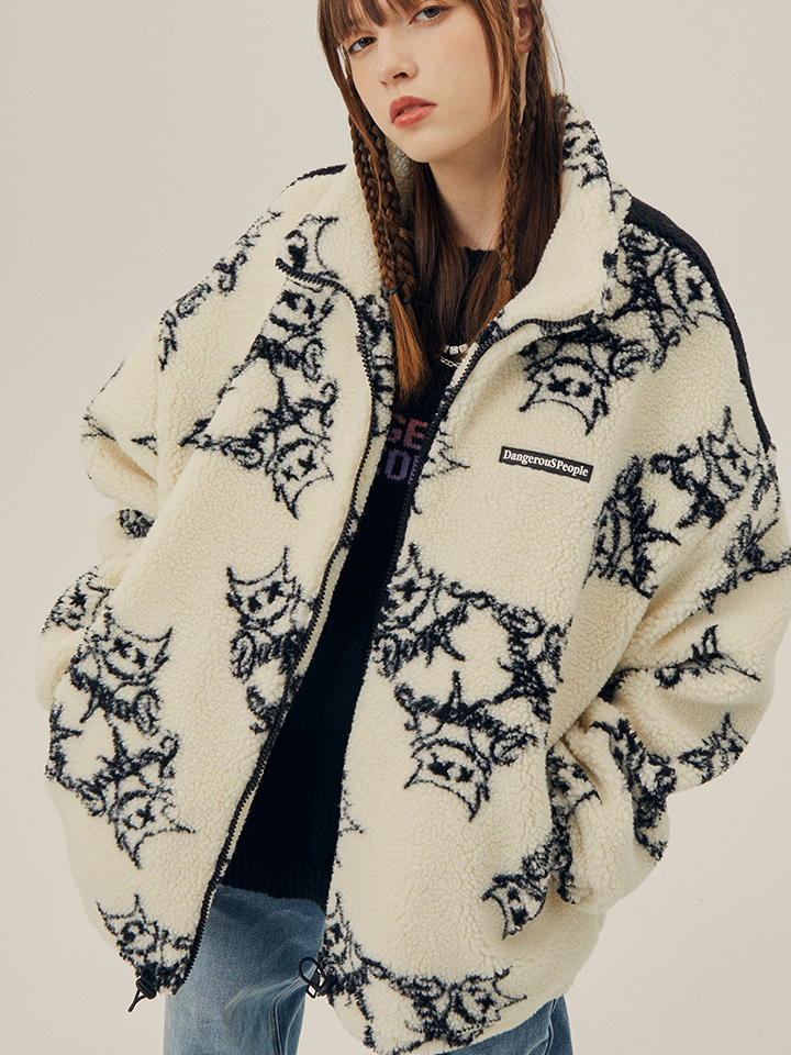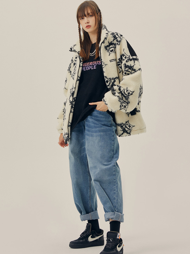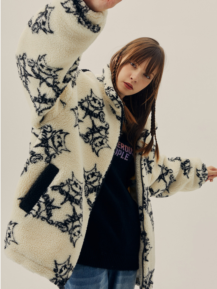 夹克版型搭配羊羔绒的设计,让外套更显时尚休闲感。