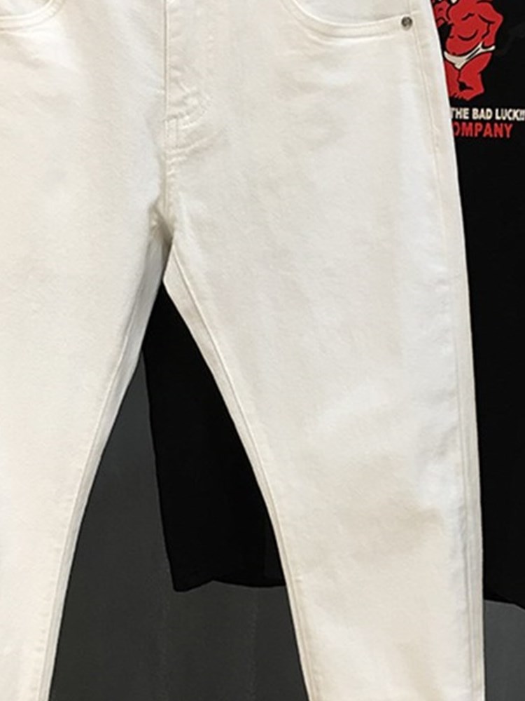 这款牛仔裤的设计很有特色,高腰的版型,很好的修饰了身材比例,显瘦效果很棒,搭配一件T恤,就能轻松穿出时尚感。