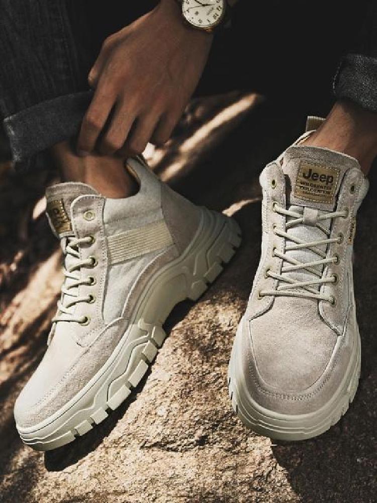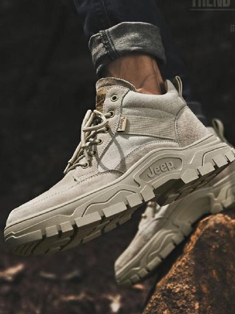 都说潮男冬天一定要有双靴子,出街才够帅气!这款短靴,很有个性,气质出众。流畅的鞋面线条,尽显男人大气沉稳的魅力,微高帮穿着舒适时尚,易搭配。复古的真皮材质,简约大方,凸显时尚质感,休闲百搭
