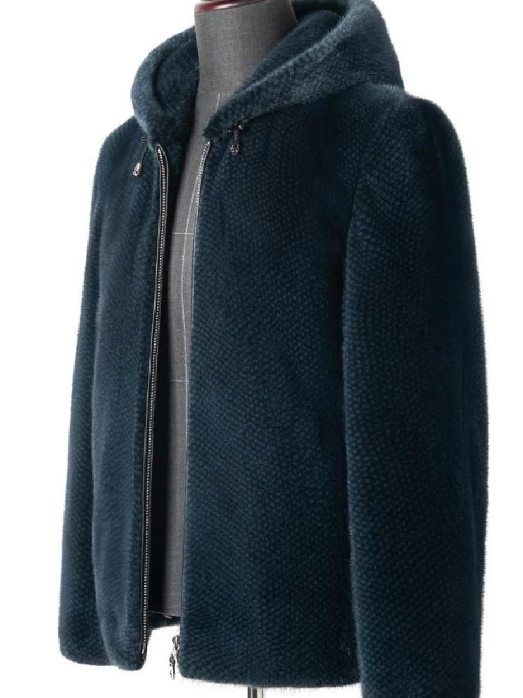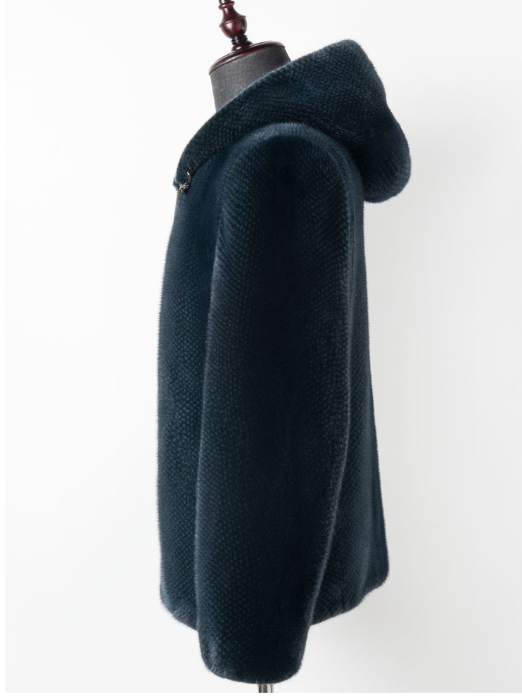 来自海宁的水貂皮草外套,精选高档小母貂,底绒饱满密实,手感滑爽,悬垂感十足,穿上去非常舒服不显臃肿。简单经典的连帽设计加上百皱的细节创意,丰富了整体的层次感,造型别致,透出女性高贵典雅的气质。宁静文雅的湖蓝色,给人一种恬淡亲和的感觉,凸显女性知性精致的一面。