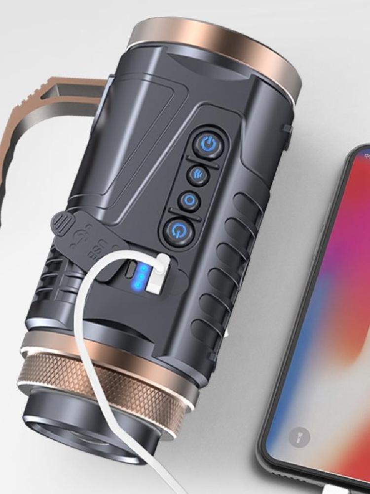 熊火强光钓鱼灯,20W亮度 可拆卸电池,12000毫安锂电池保证超长续航时间。强光可射500m,最长续航时间30小时。原装T6-R3灯芯,四光源,两档强弱转换。高清液晶显示屏,亮度高,显示数据绝对准确。自带光学变焦功能,旋转即可调焦。纯合金制造,不生锈,耐腐蚀,散热迅速。