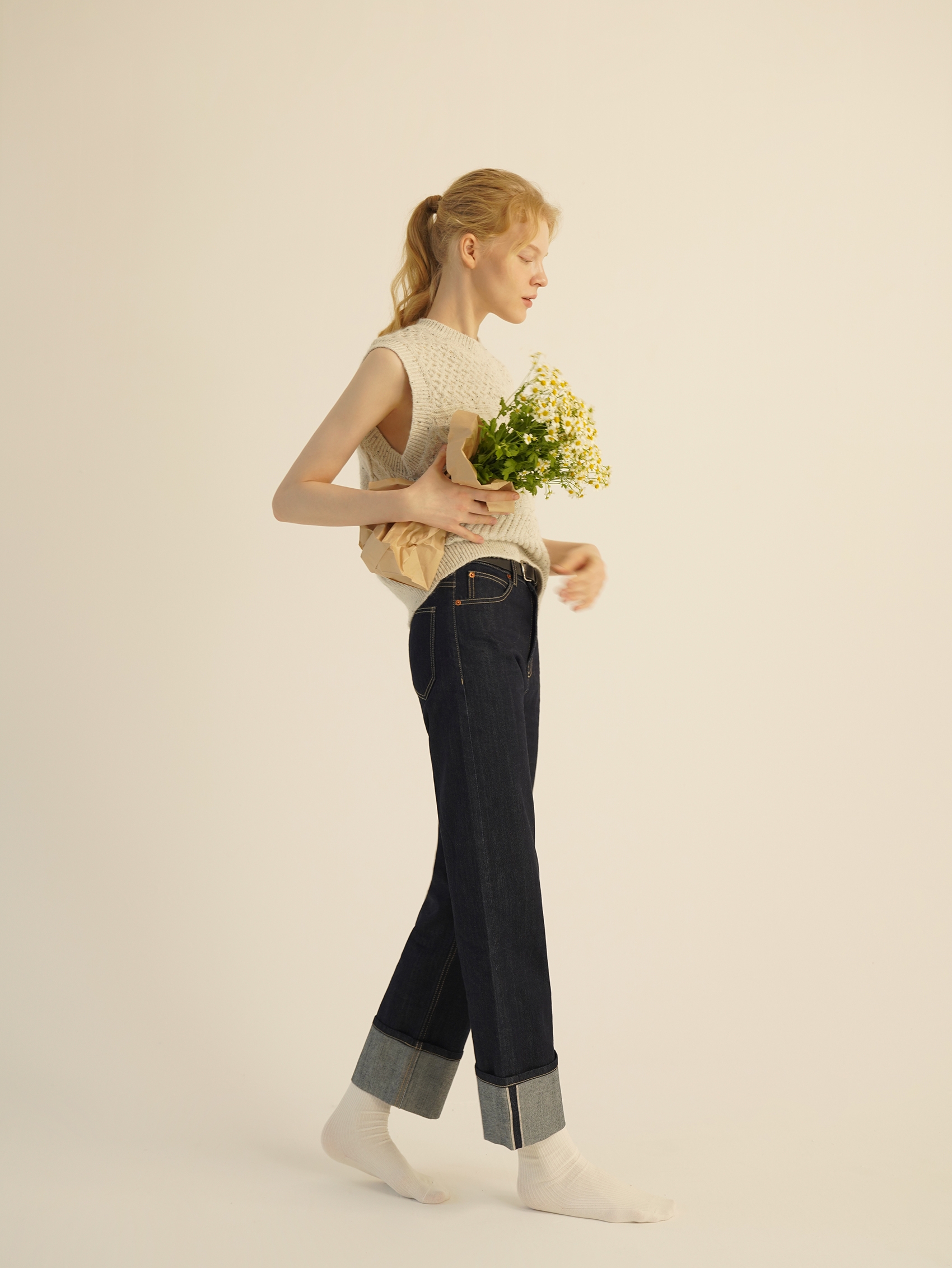 非常简单的一款牛仔裤,给你牛仔最原始的本色!干净的纯颜色,没有任何杂质,就像单纯的你!宽松的直筒版型,有着很好的修饰腿型效果!卷起裤腿来更时髦。