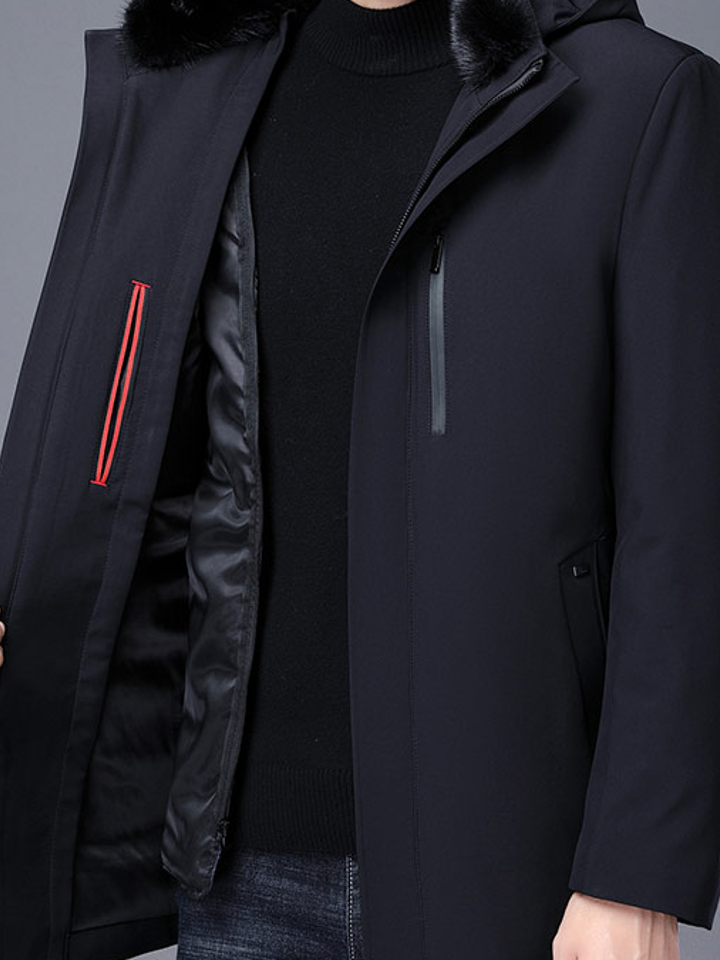 这款时尚的羽绒服采用可拆卸兔毛领设计,美观时尚,方便清洗,保暖效果好。精细的做工,凸显肩部优美的线条。经典的斜插口袋设计,简约方便,安全性高。舒适的下摆设计,穿着起来更加挺括有型。